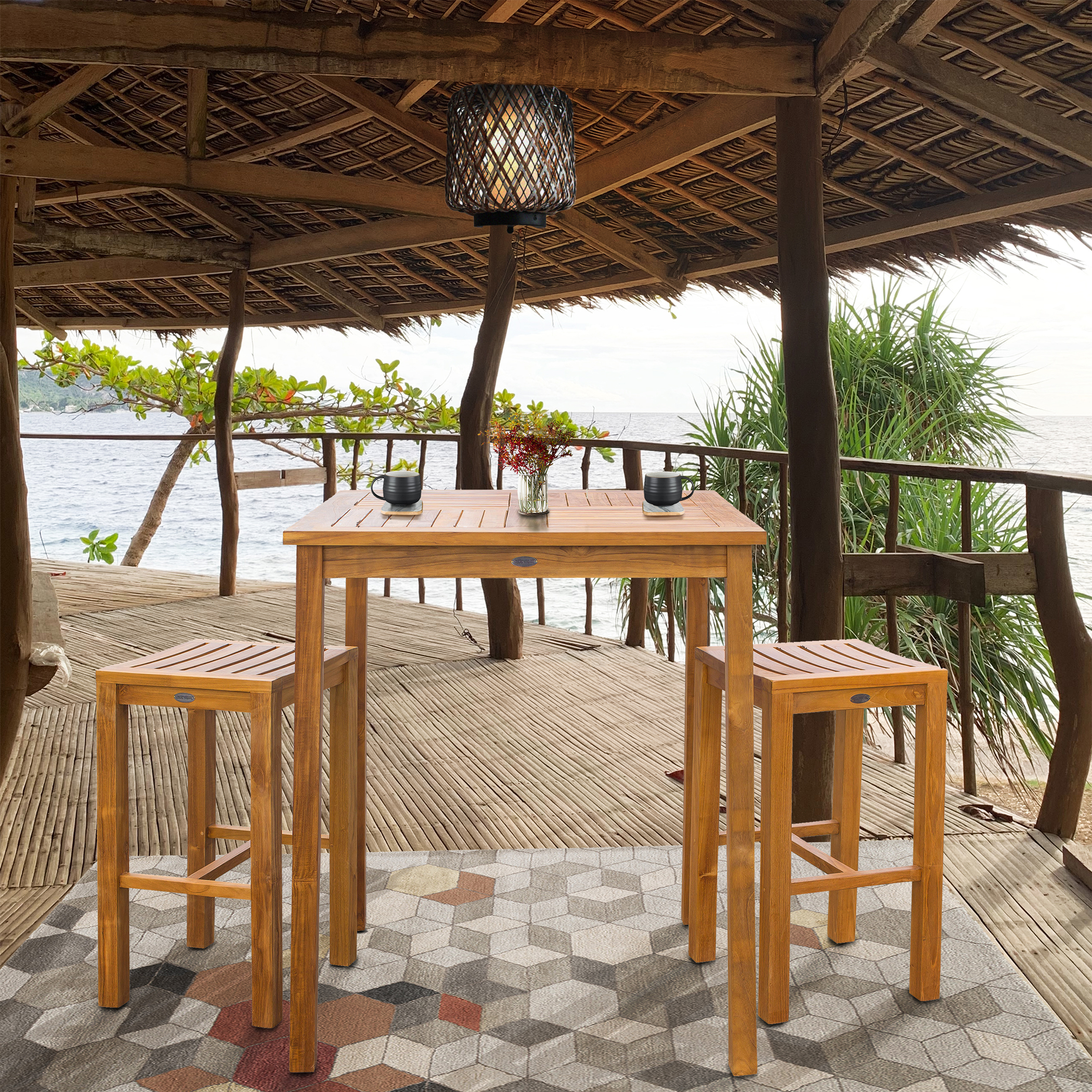 3 Piece Teak Wood Havana Patio Bistro Bar Set with 35" Square Table & 2 Barstools