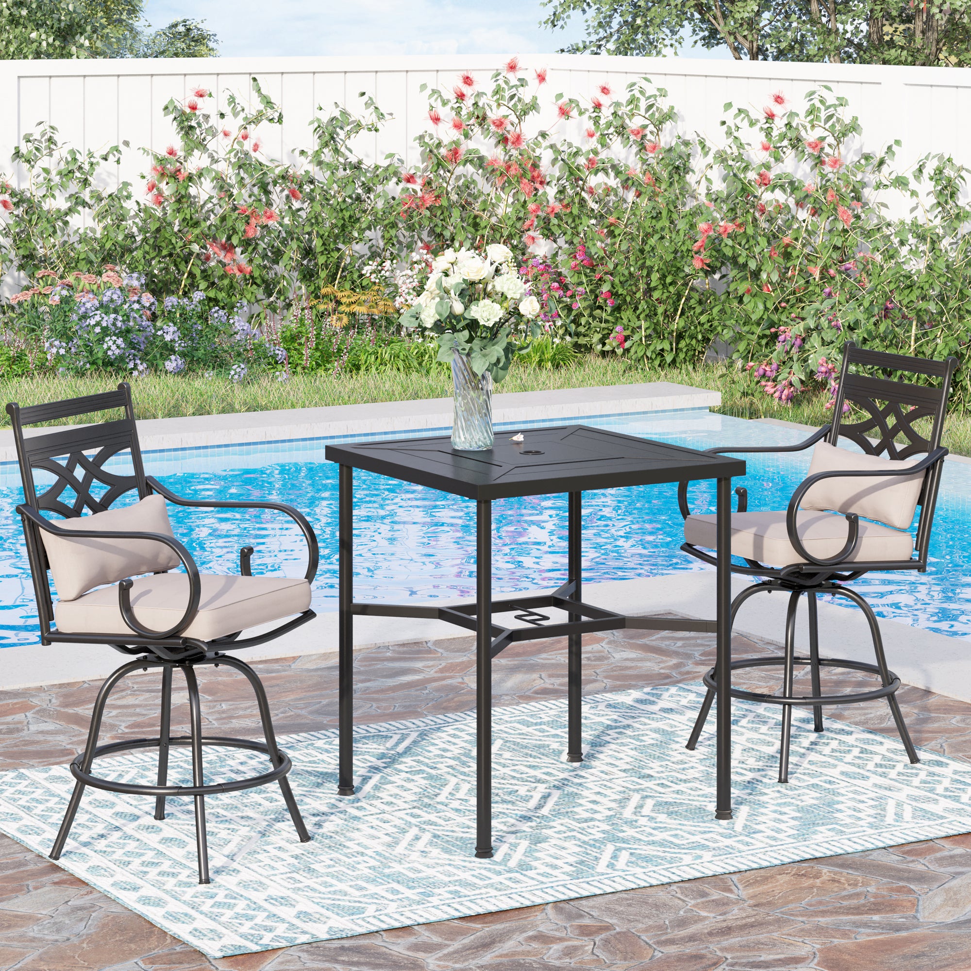 Sophia & William 3 Piece Outdoor Patio Swivel Bar Stools Set Height Bar Table and Chairs Dining Furniture Set