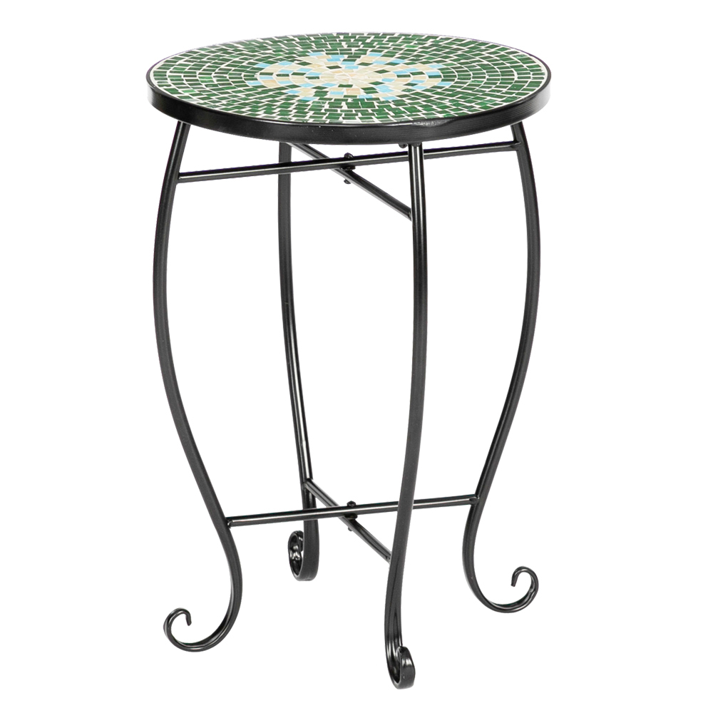 Gzxs Outdoor Side Table - Patio Table Mosaic Coffee Side Tables Glass Top Accent Table 14" Round Small Table for Indoor Garden Plant Stand (Green Lawn)