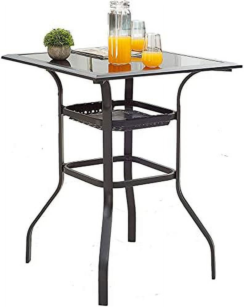 Patio Bar Height Outdoor Table Bistro Square Outside High Top With 2-Tier Metal Frame (27.6"X 27.6"X 36.2"H), Black