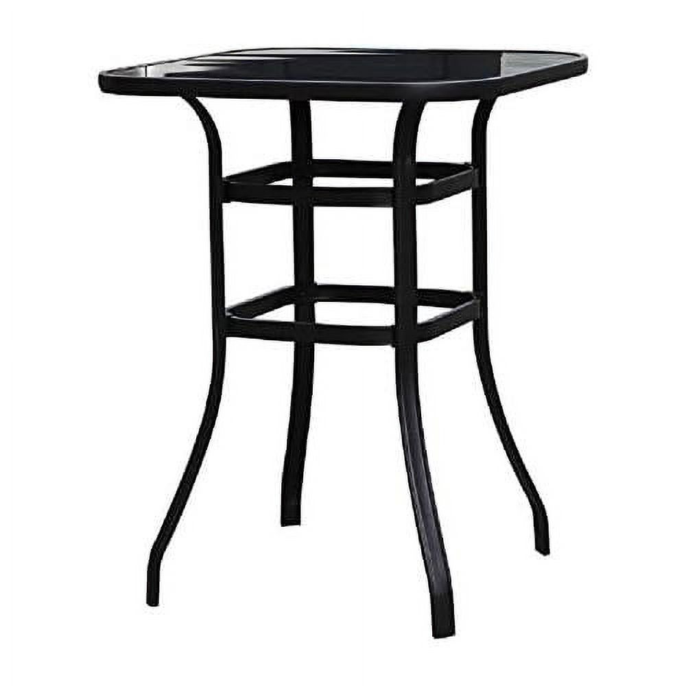 Outdoor Bistro Bar Height Table Metal Frame Square Tempered Furniture Glass Top All Weather For Patio