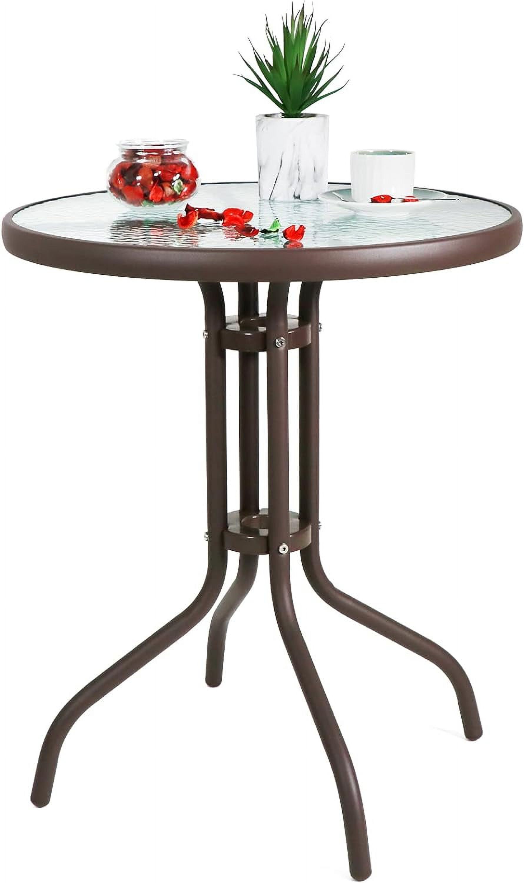 TJUNBOLIFE Love & Peace 24" x 24" Outdoor Bistro Table Metal Round Patio Outdoor Coffee Table Garden Backyard Dining Table W/Elegant Water Ripple Glass Table Top Brown