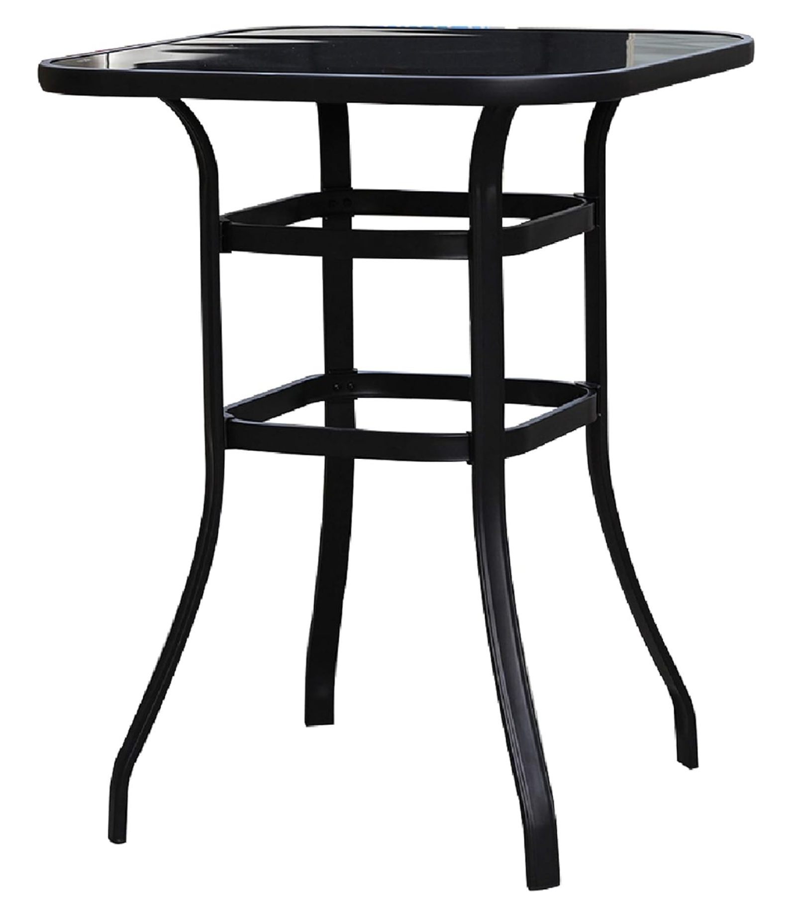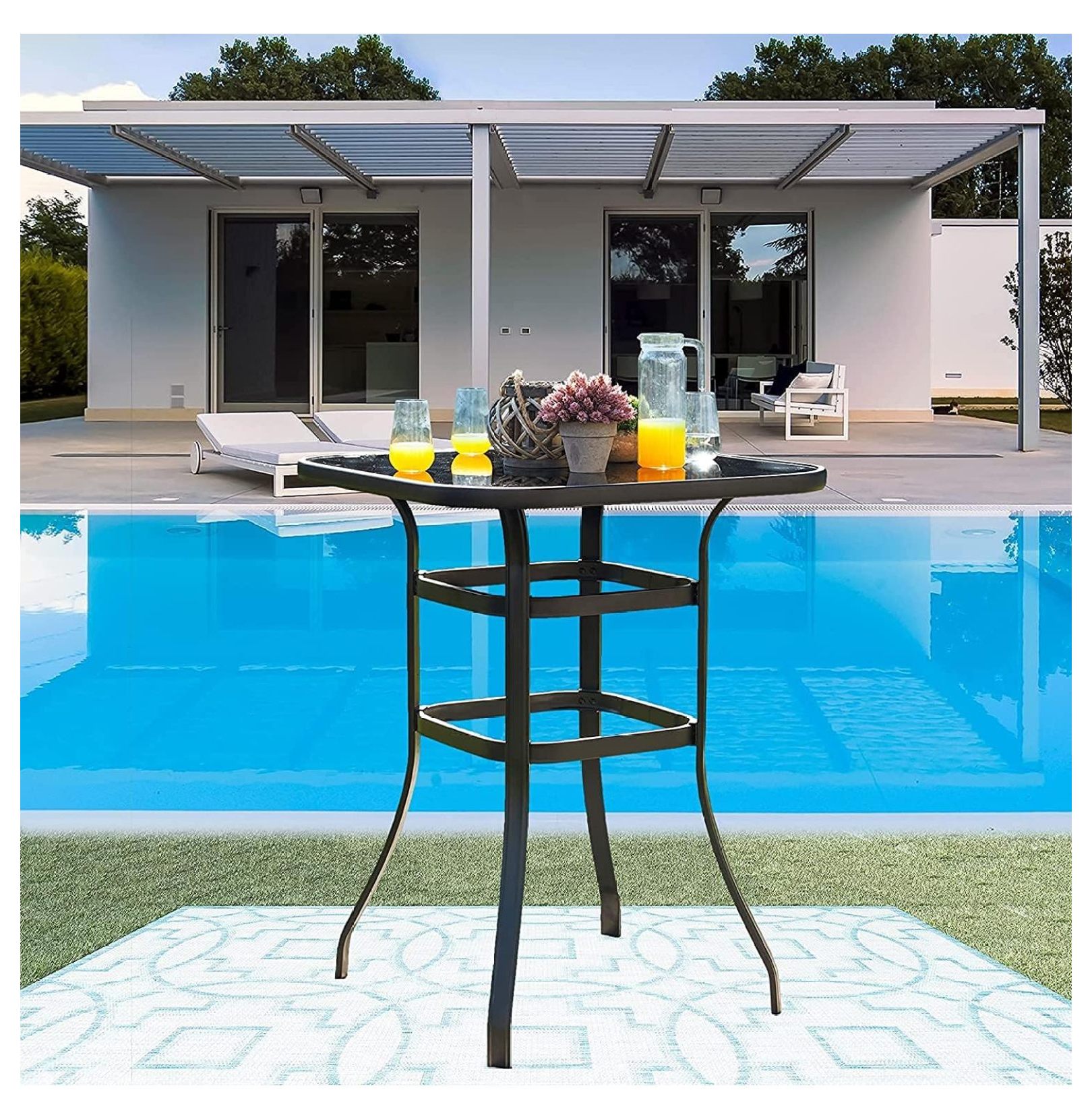 MOWENTA Patio Bar Height Table Square Tempered Glass Metal Frame Outdoor Bistro High Top Black 31.5 L x 31.5" W x 40.2" H