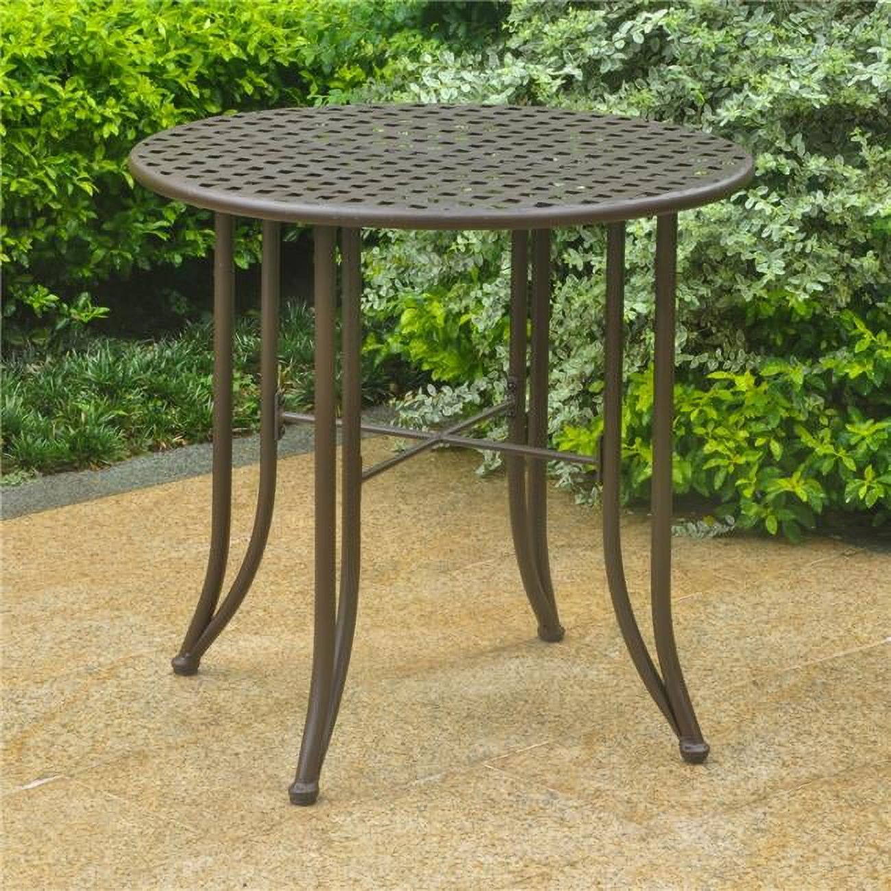 International Caravan 3473-TBL-RT-BN Mandalay Iron Patio Bistro Table, Rustic Brown