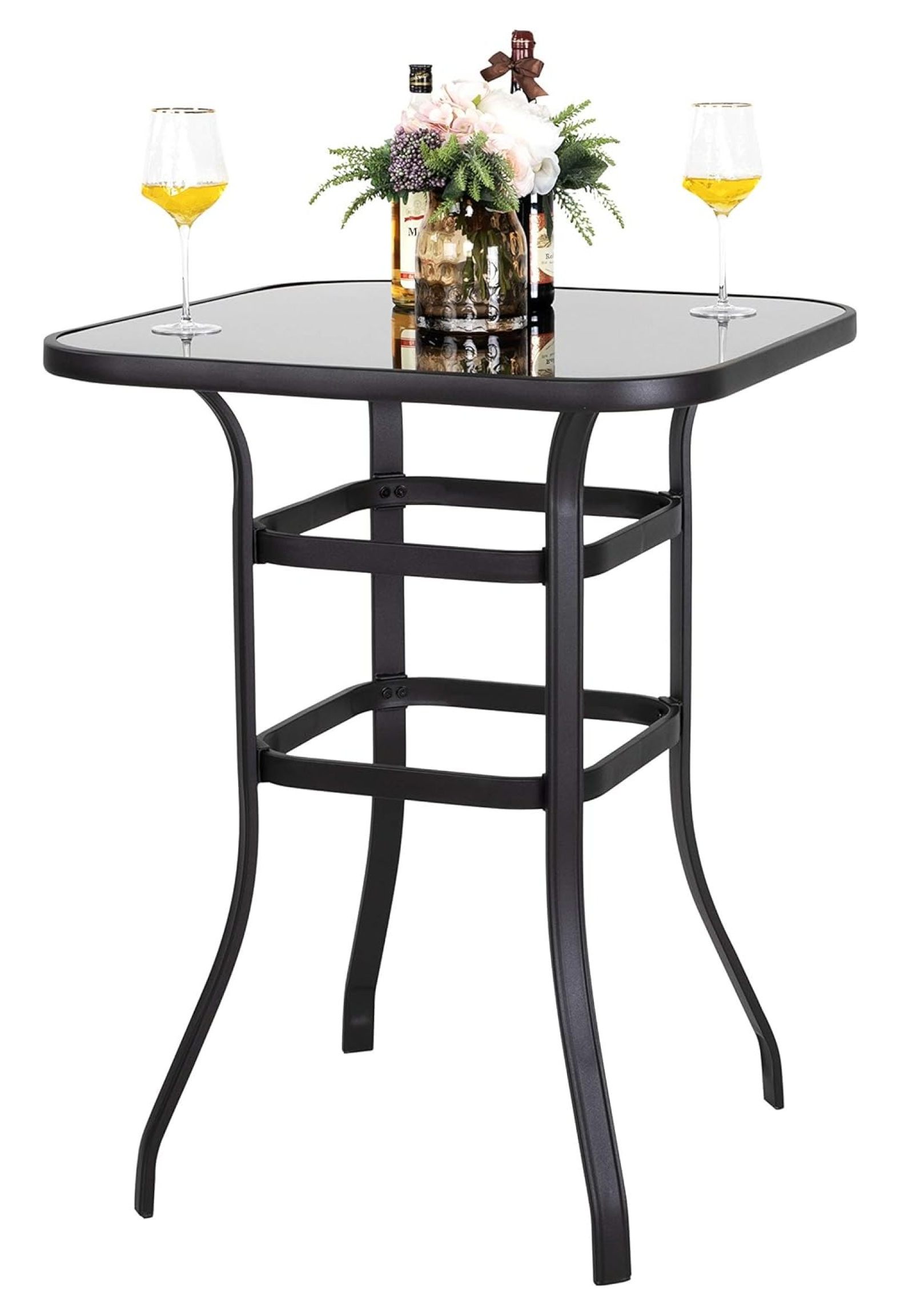 LeCeleBee Outdoor Patio Bar Height Table, 31.5" Square Black Tempered Glass Top, 40.2 Height High Bistro Table, Steel Frame Patio Furniture for Backyard, Lawn, Balcony, Garden Black