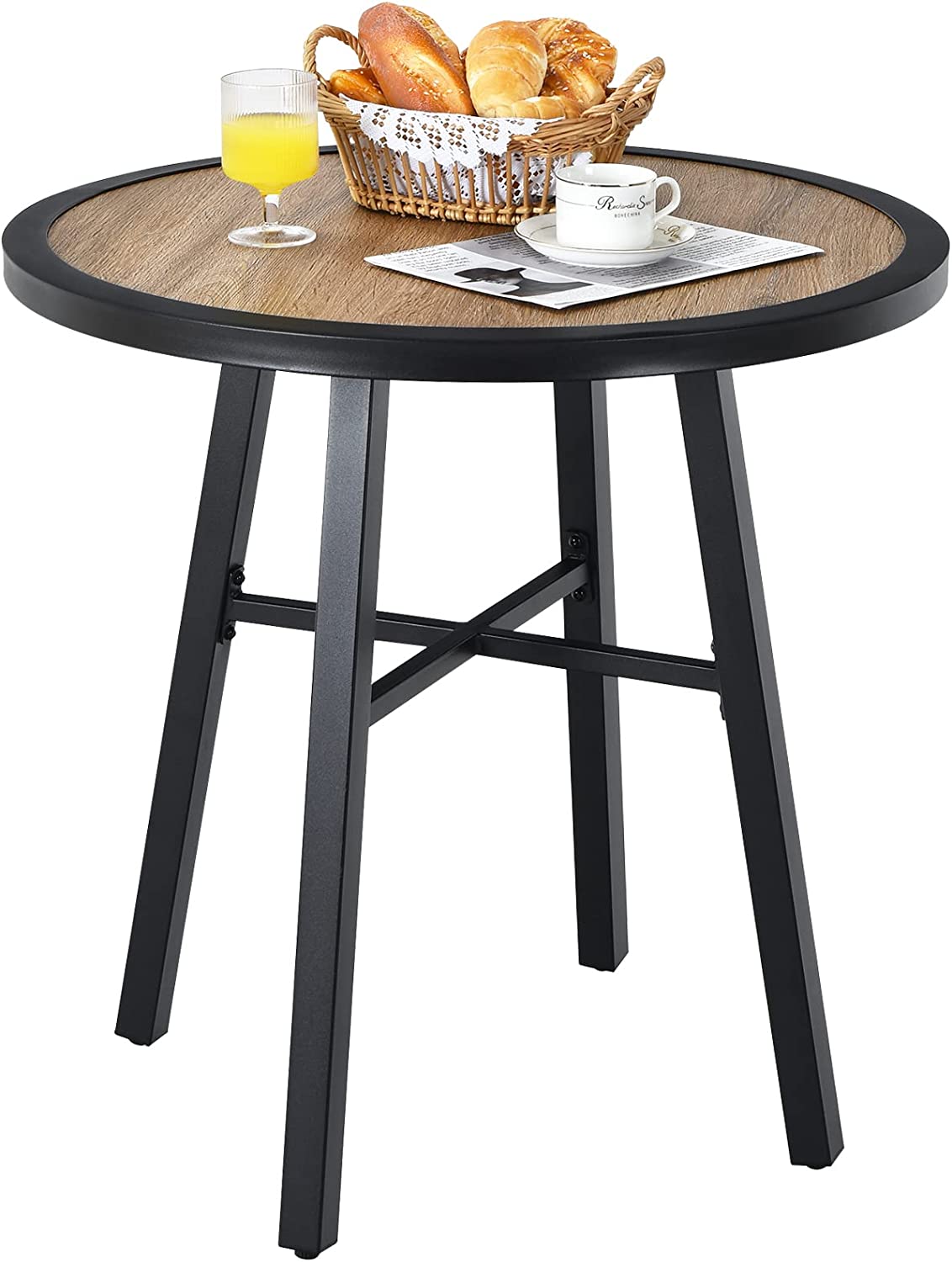 Fonirra 29" Patio Bistro Table with Steel Frame Coffee Side Table with Non-Slip Foot Pads Outdoor Round Bistro Table for Garden, Backyard, Patio