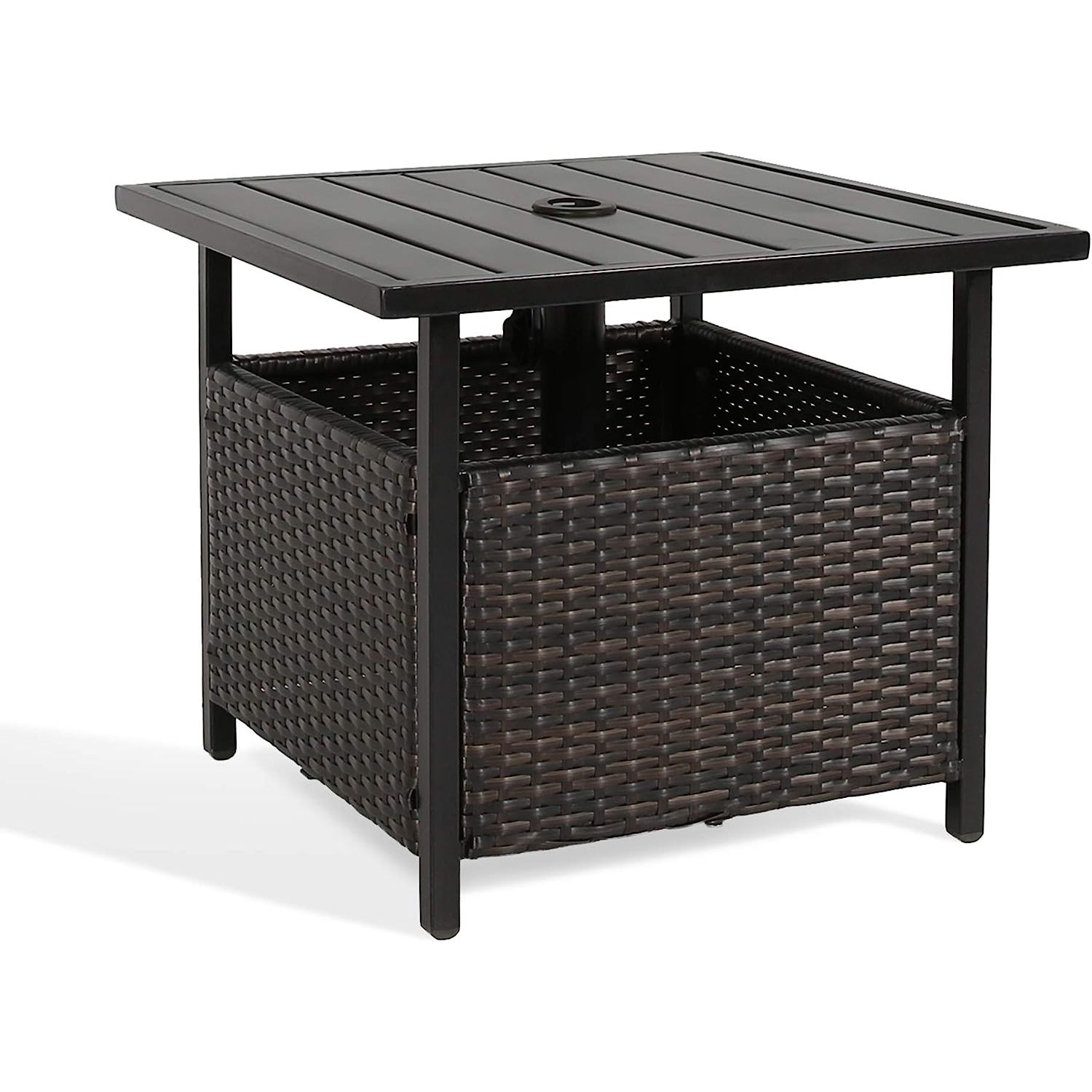 Bilot Patio PE Wicker Umbrella Side Table Stand, Outdoor Bistro Table with Umbrella Hole