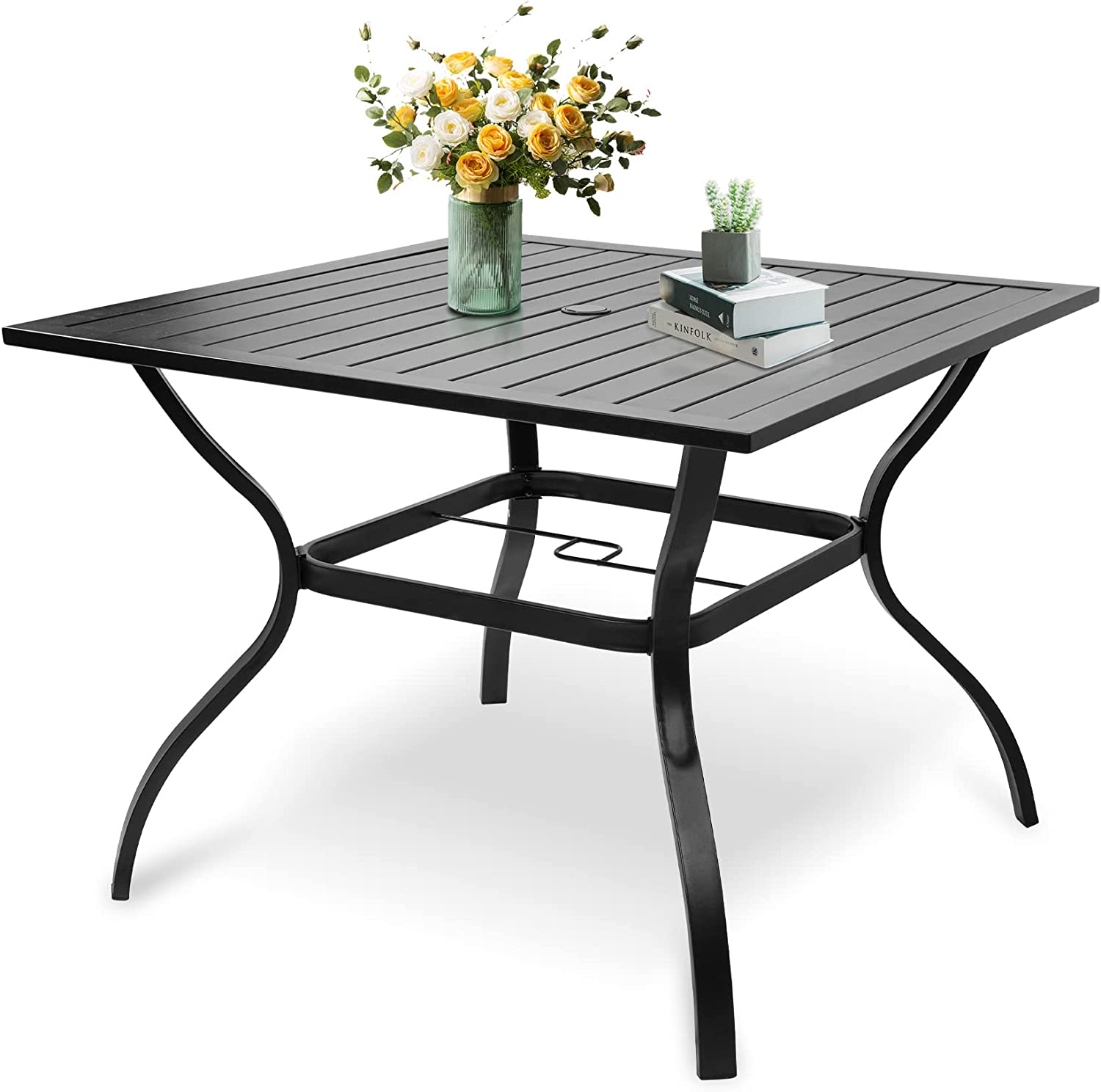 SUNCROWN 37" 4 Seat Outdoor Dining Table Patio Metal Square Bistro Balcony Table with 1.57" Umbrella Hole, Black