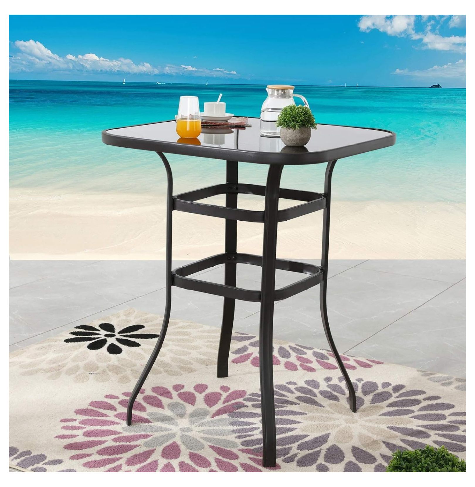 Vongrasig Outdoor Patio Bar Height Table, 31.5" Square Black Tempered Glass Top, 40.2 Height High Bistro Table, Steel Frame Patio Furniture for Backyard, Lawn, Balcony, Garden Black