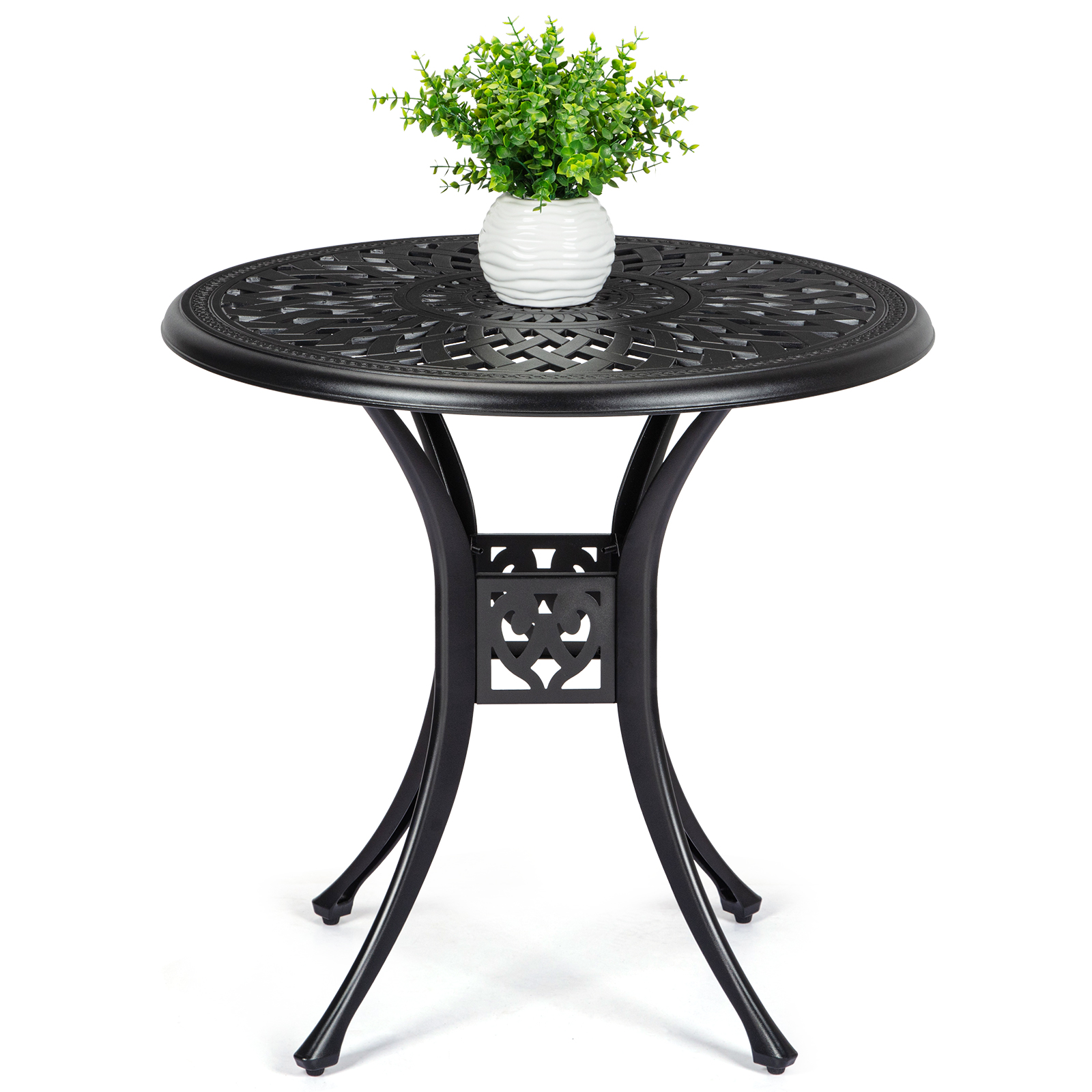 Round Outdoor Table, Patio Bistro Table, Cast Aluminum Bistro Table With Umbrella Hole, For Poolside, Deck, Porch, Backyard, Garden, Balcony, Diameter 30.25 "X H 29.5", Black