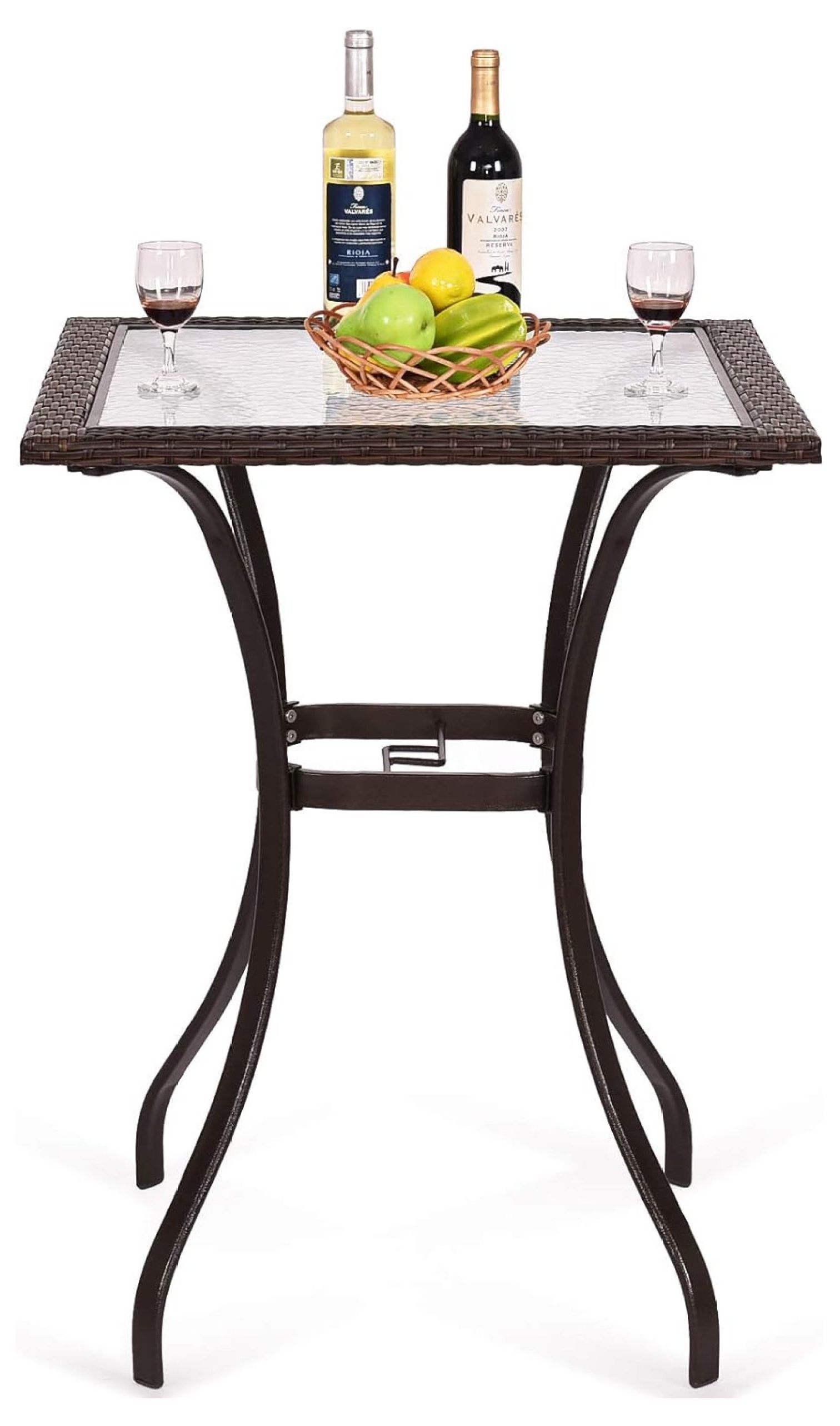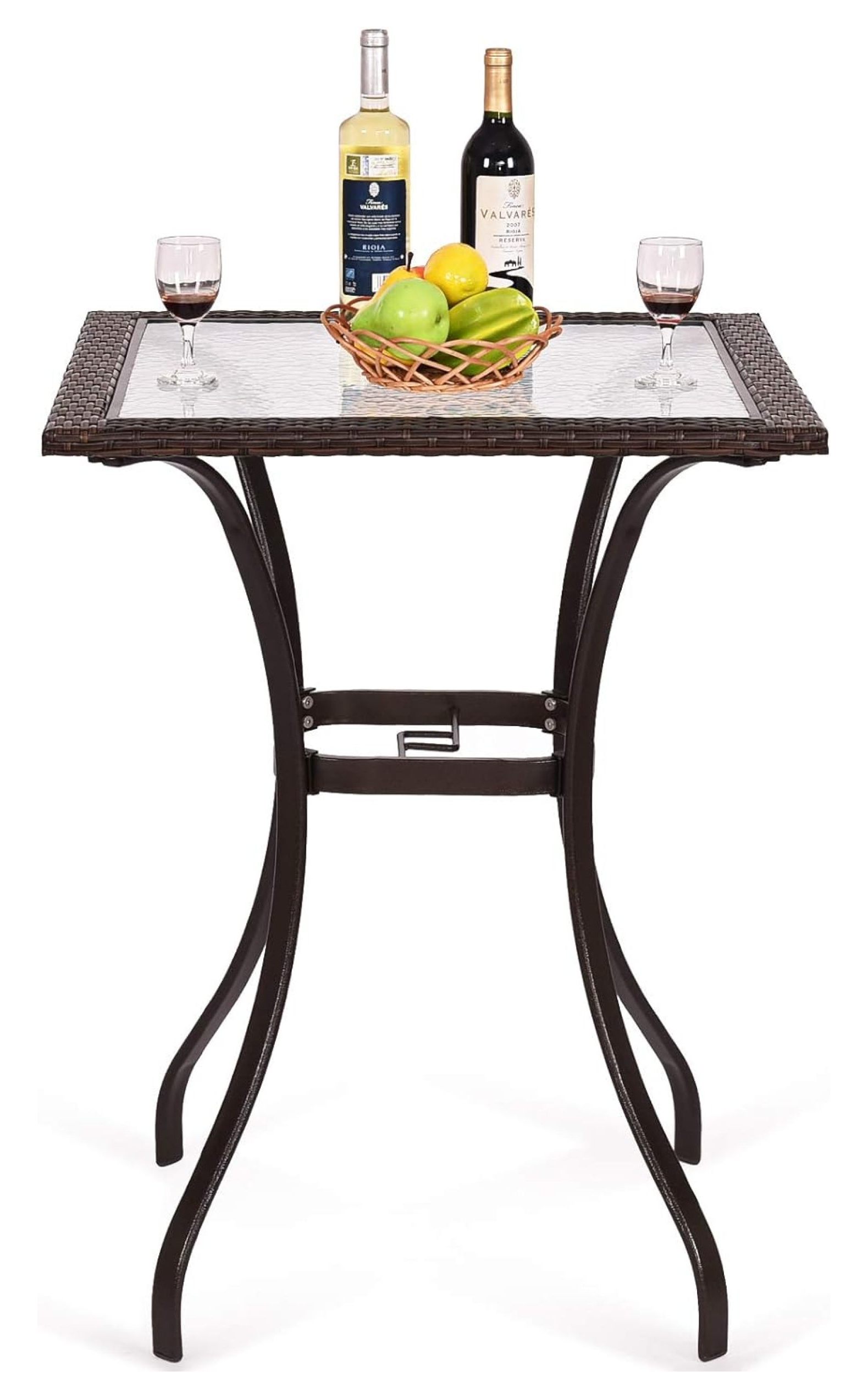 PatioFestival Bar Height Outdoor Bistro Table Patio Table Dining Side Table Metal All Weather Frame with Tempered Glass Top(Black)
