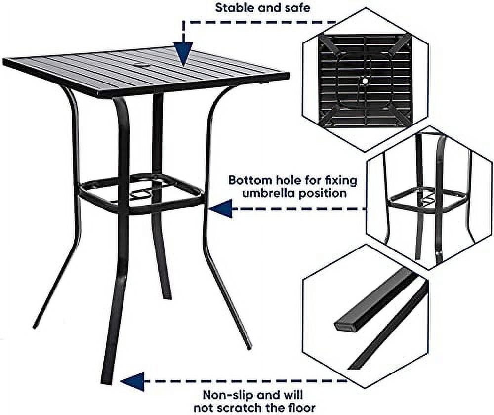 Oakcloud Patio Square Height Bar Table Outdoor Metal Frame Bistro Table with Umbrella Hole -39" Height Coating Old Craft,Rust and Weather Resistant,Classic Black