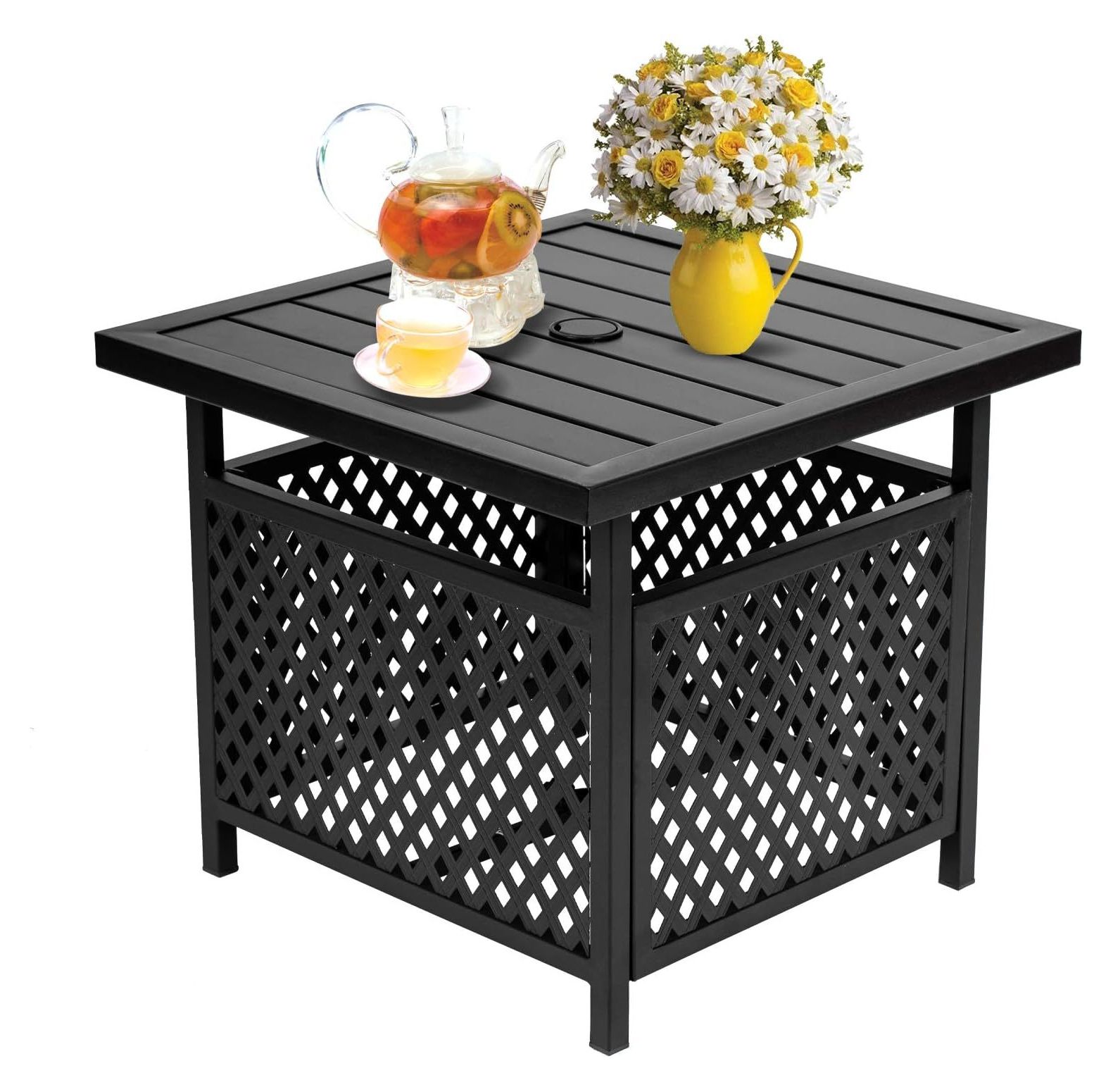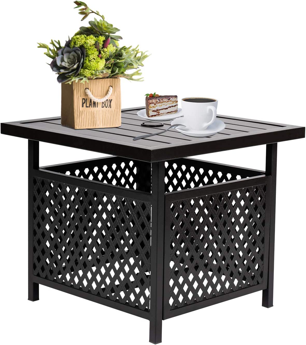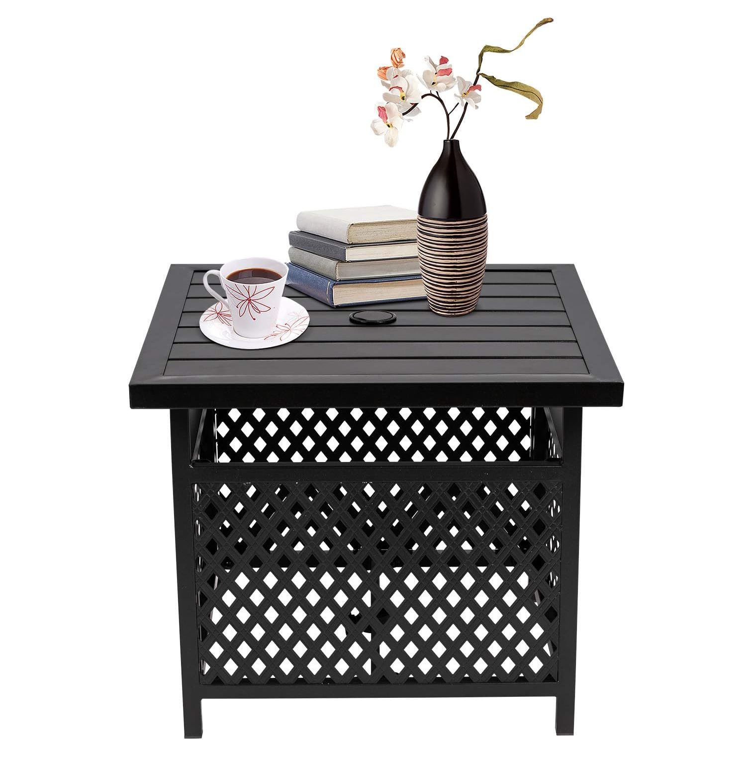Outdoor Umbrella Side/End Table Patio Metal Square Coffee Bistro Table with 1.57 Umbrella Hole, Black