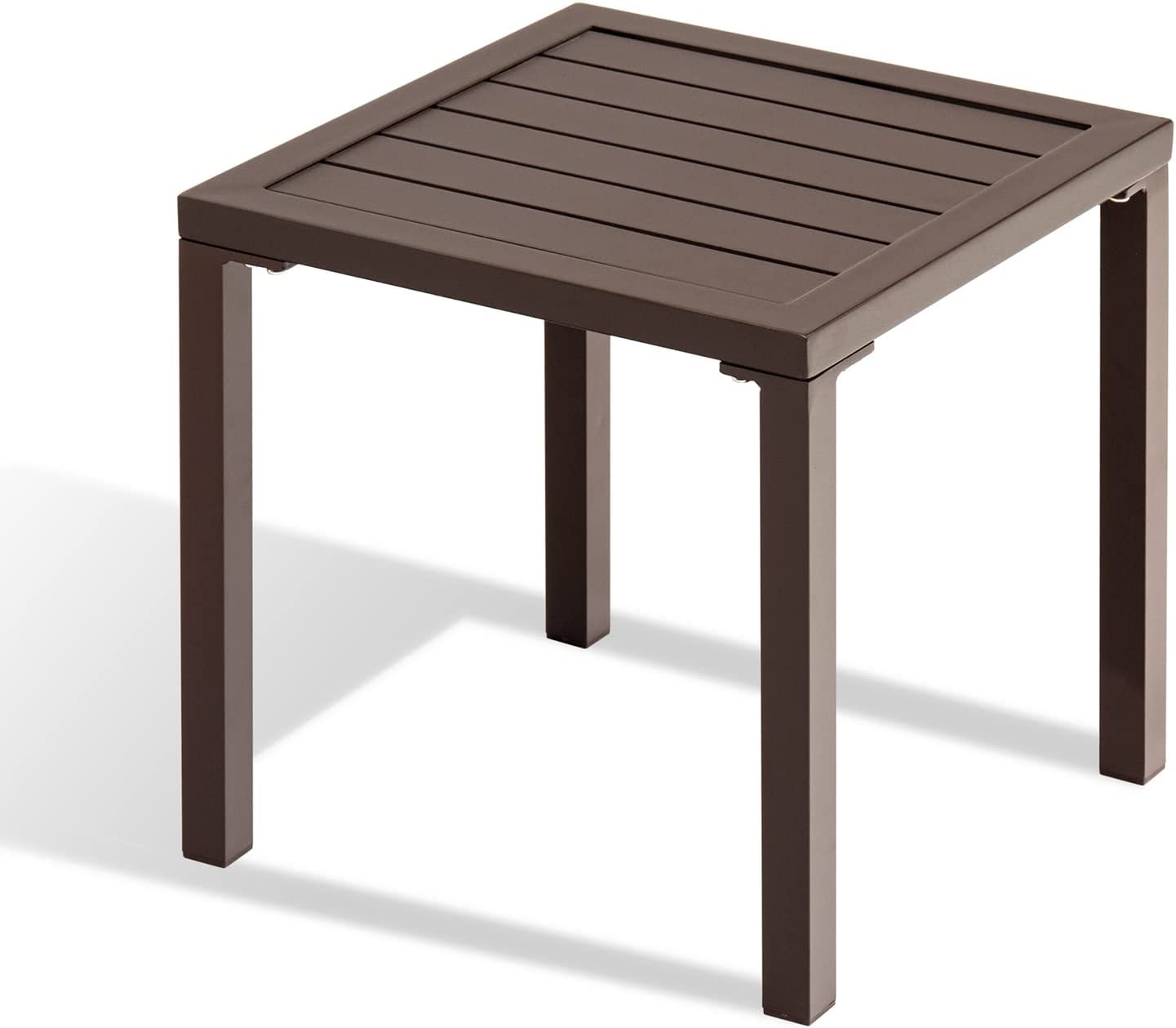 Chaise Lounge Table, Aluminum Square Side/End Table, Small Patio Coffee Bistro Table for Outdoor Indoor (Brown)