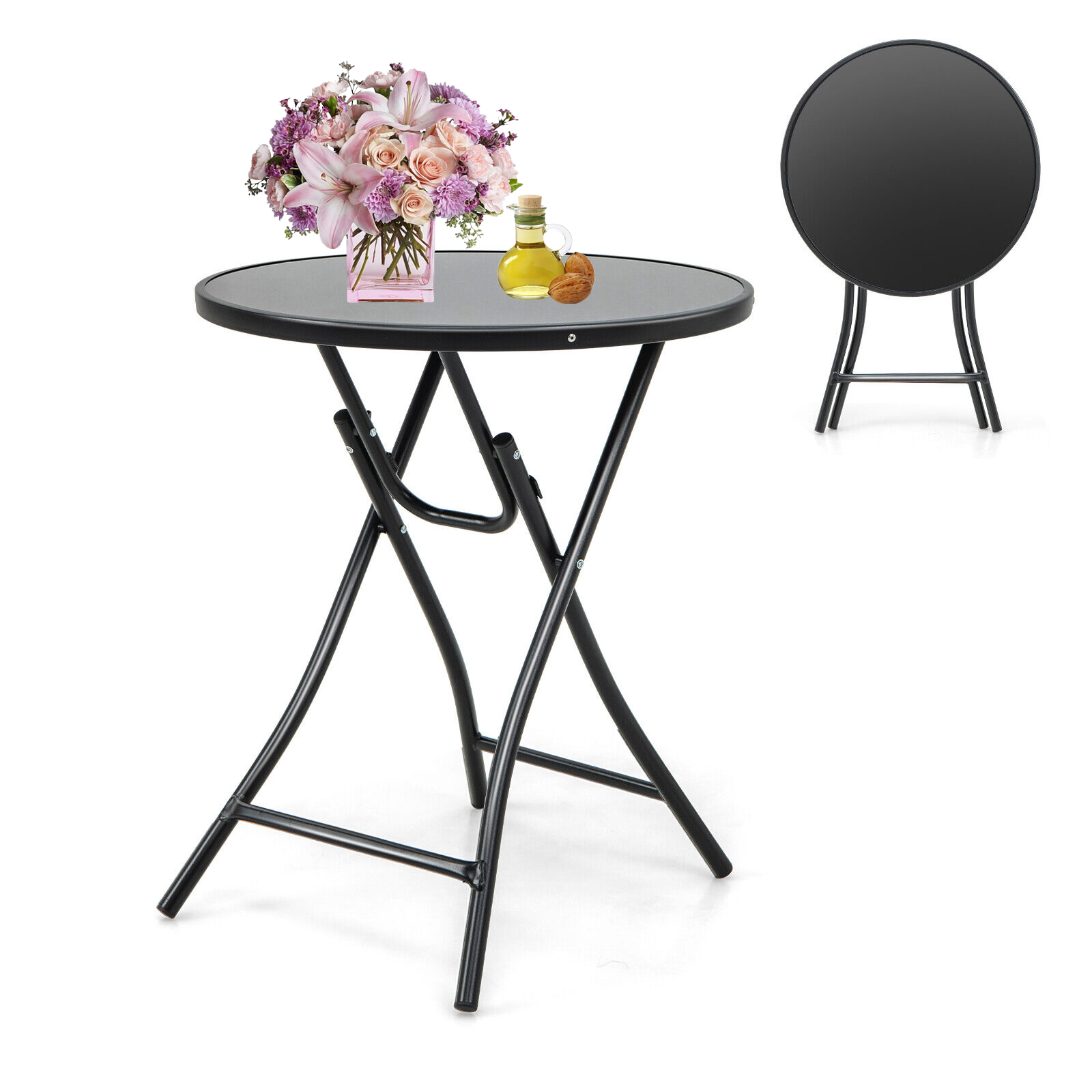 Exdeerjoy 23 Inch Round Folding Table, Outdoor Patio Bistro Table, Tempered Glass Top and Sturdy Metal Frame, Porch, Balcony, Deck Patio Side Table