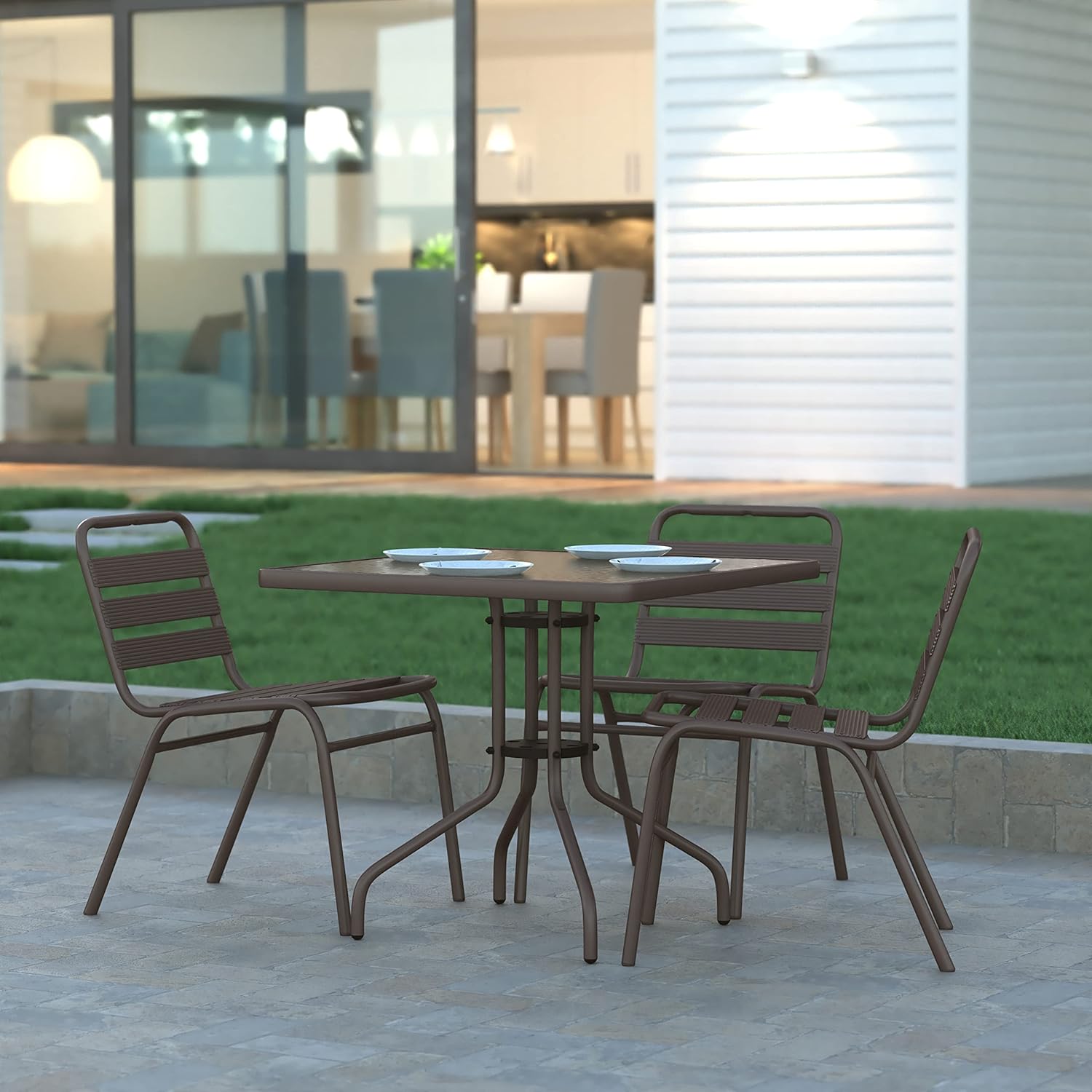Benji Bronze Metal Patio Table with 31.5'' Square Tempered Glass Top