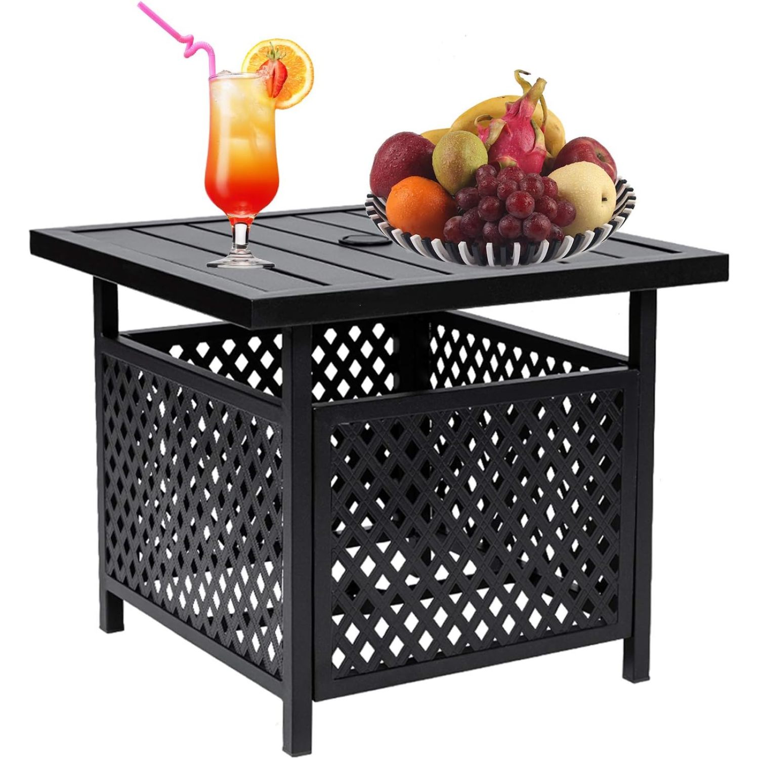 Bilot Outdoor Bistro Patio Square Side Table with 1.57 inches Umbrella Hole for Garden, Swimming Pool, Backyard, Black