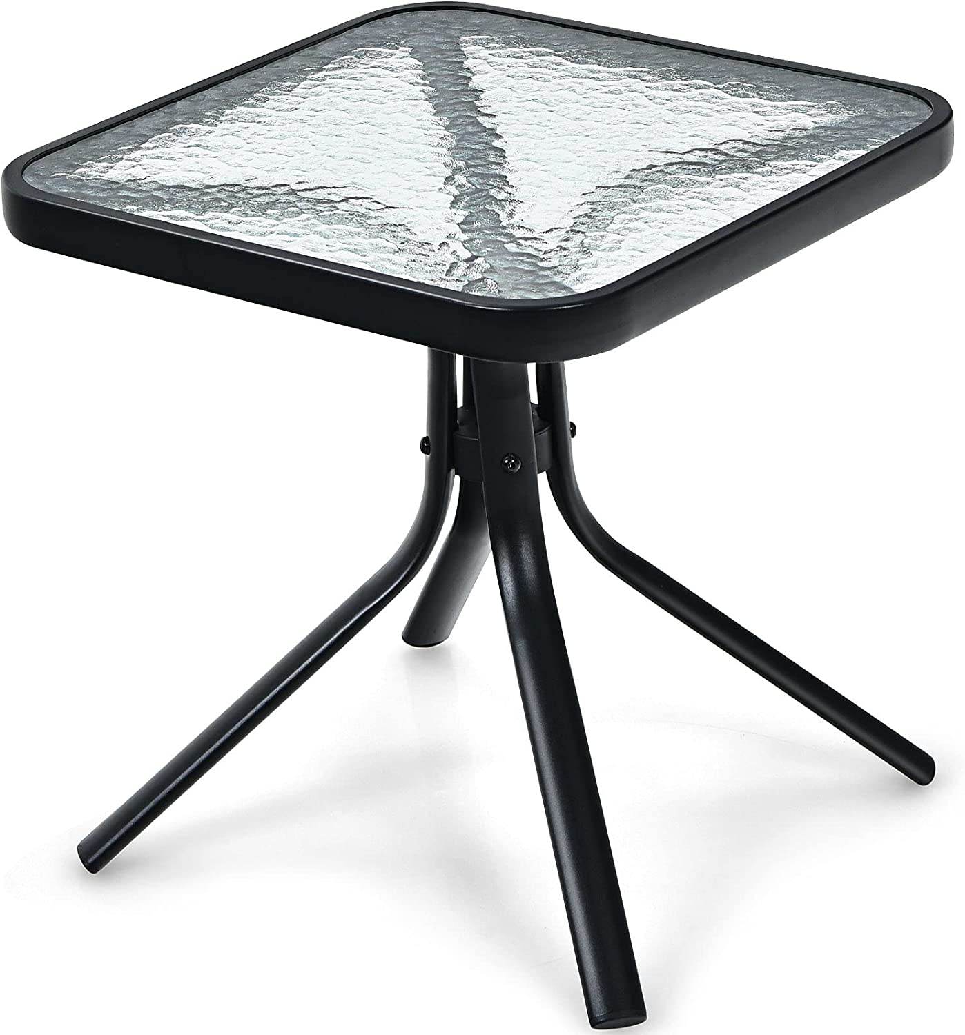 Outdoor Bistro Table, Patio Side Table with Tempered Glass Tabletop & Steel Frame, Patio Coffee End Table for Backyard, Lawn, Garden (Black)