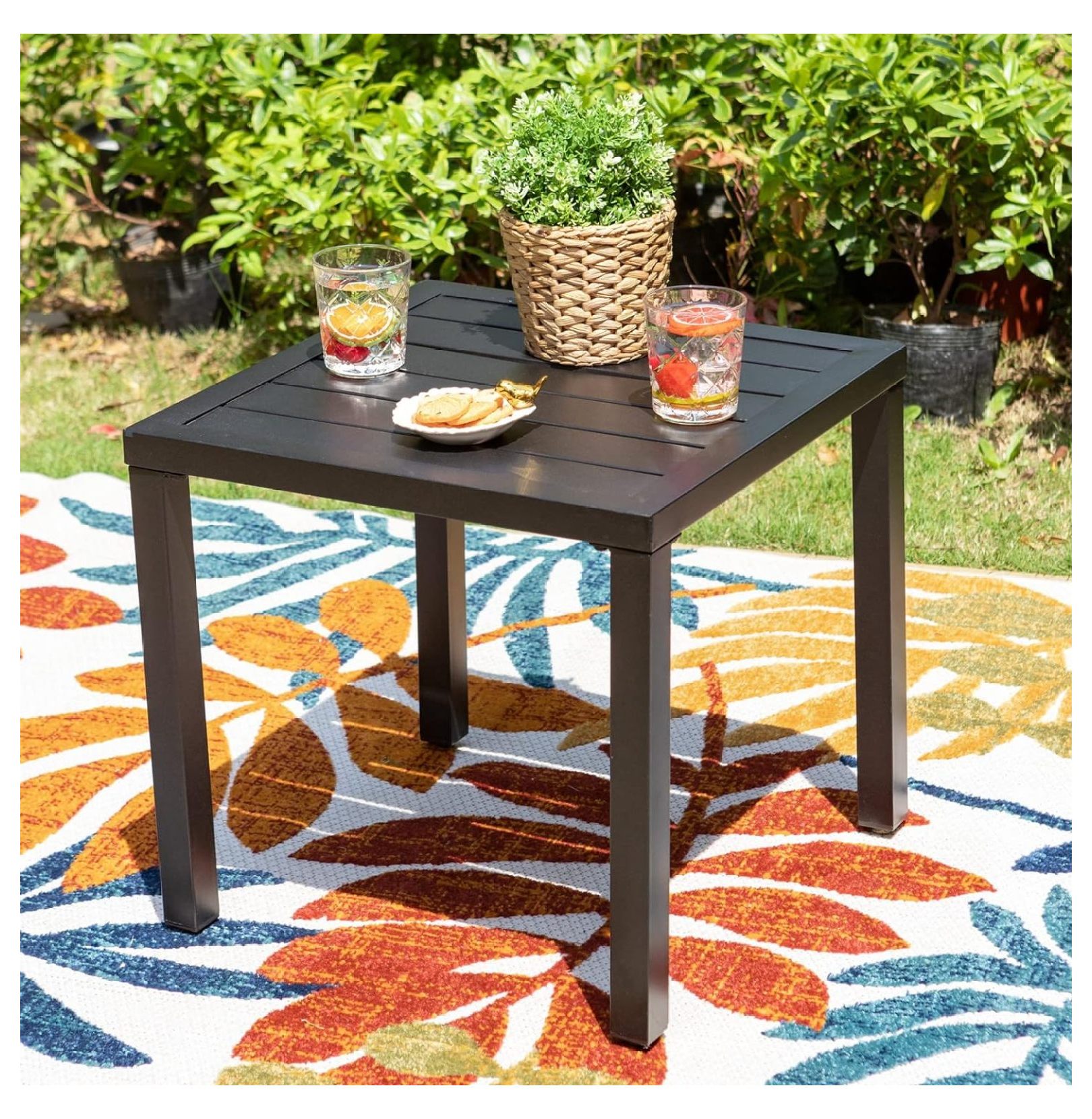 LeCeleBee Black Patio Table Metal Square Coffee Tea Bistro Table Small Side End Adjustable Outdoor Furniture Table,Black