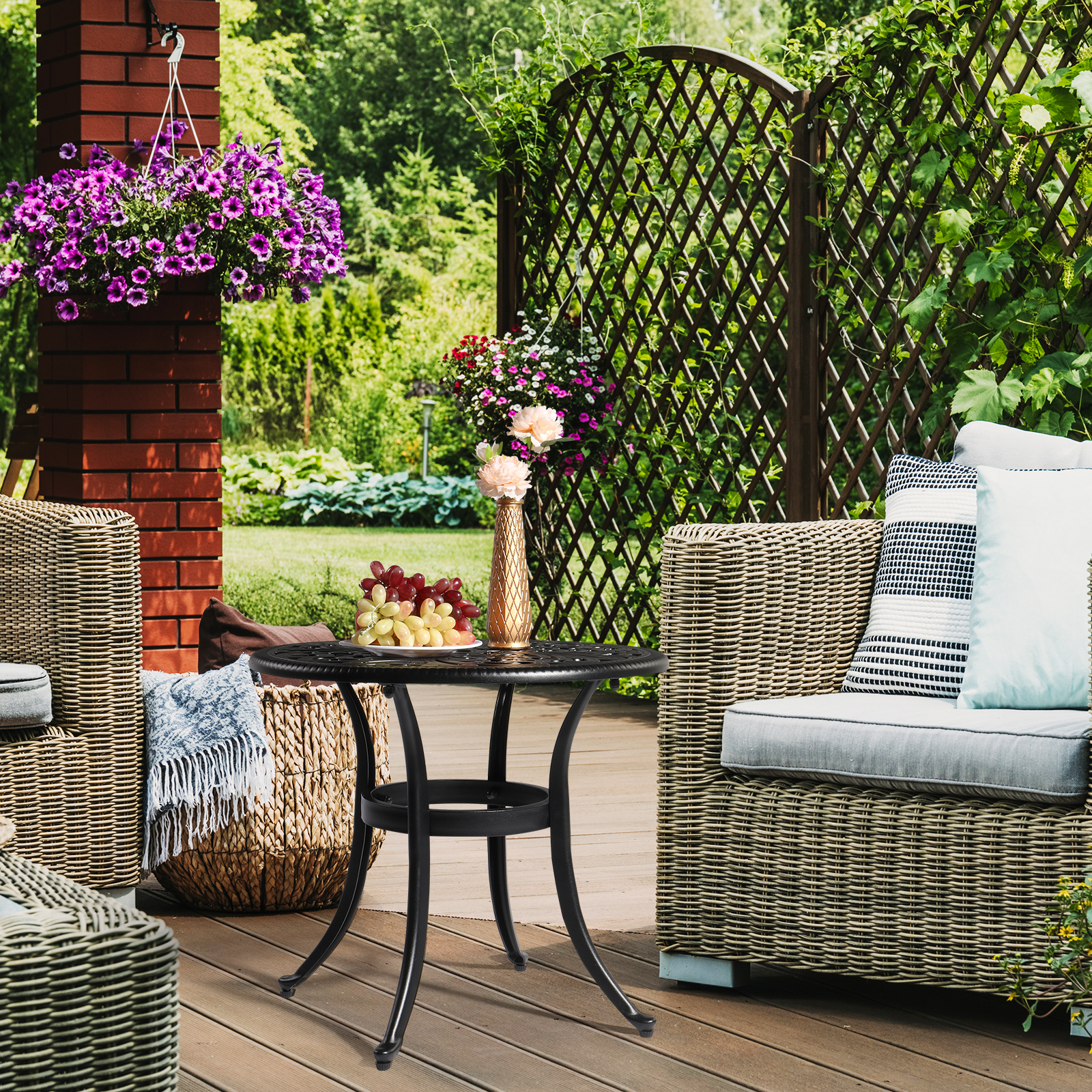 VINGLI Patio Side Table with Umbrella Hole 1.57" Umbrella Stand Table, Metal Outdoor Bistro Table Coffee Table End Table for Garden, Pool, Deck