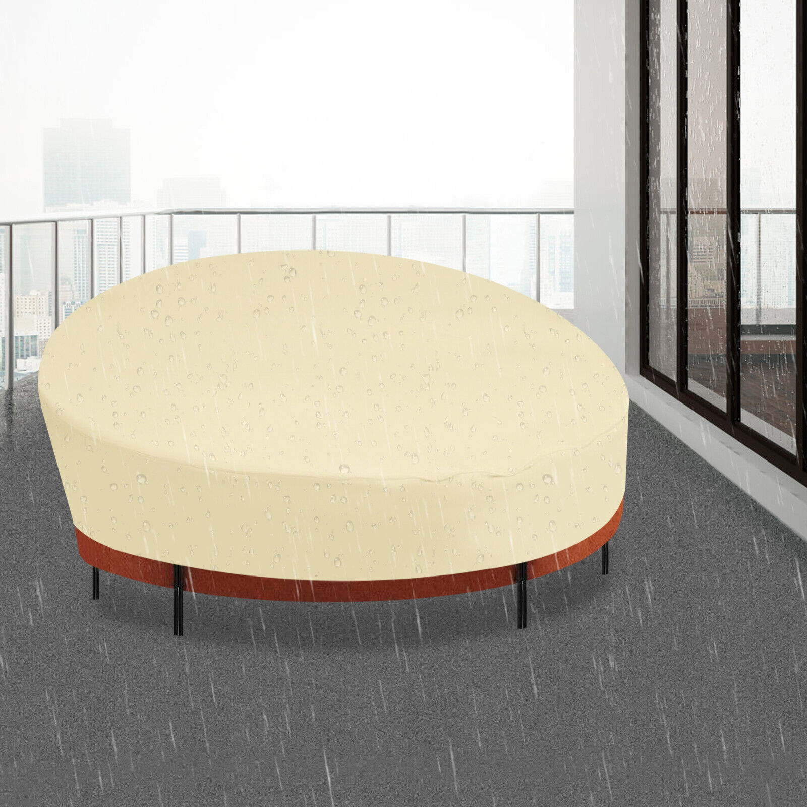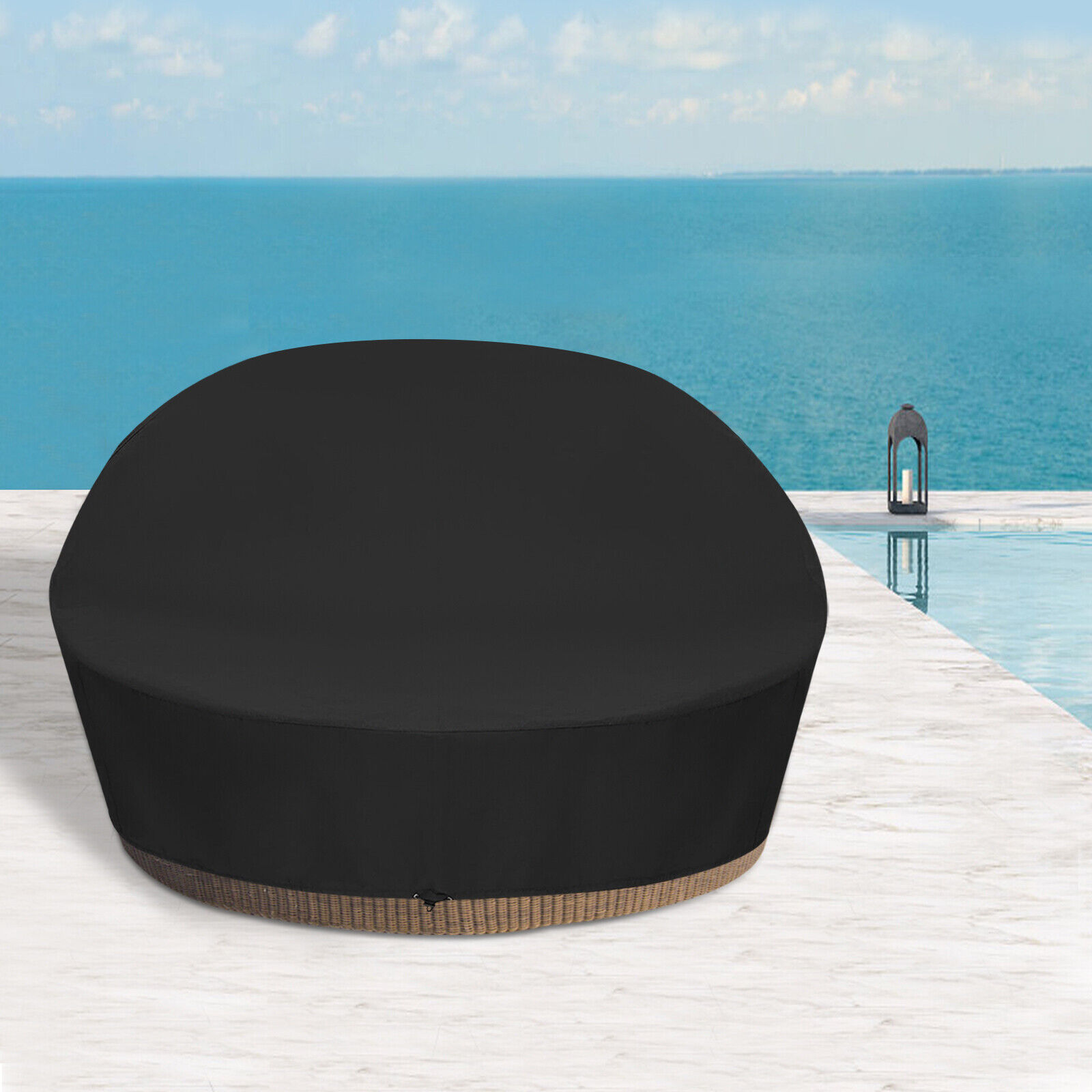 210D Oxford Fabric Round Outdoor Daybed Cover - Waterproof Patio Furniture Cover (Creamy-white/Black)