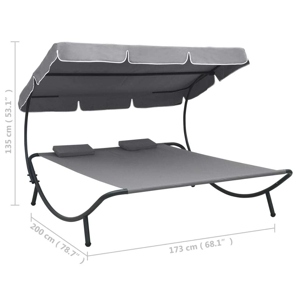 Patio Lounge Bed with Canopy and Pillows Gray