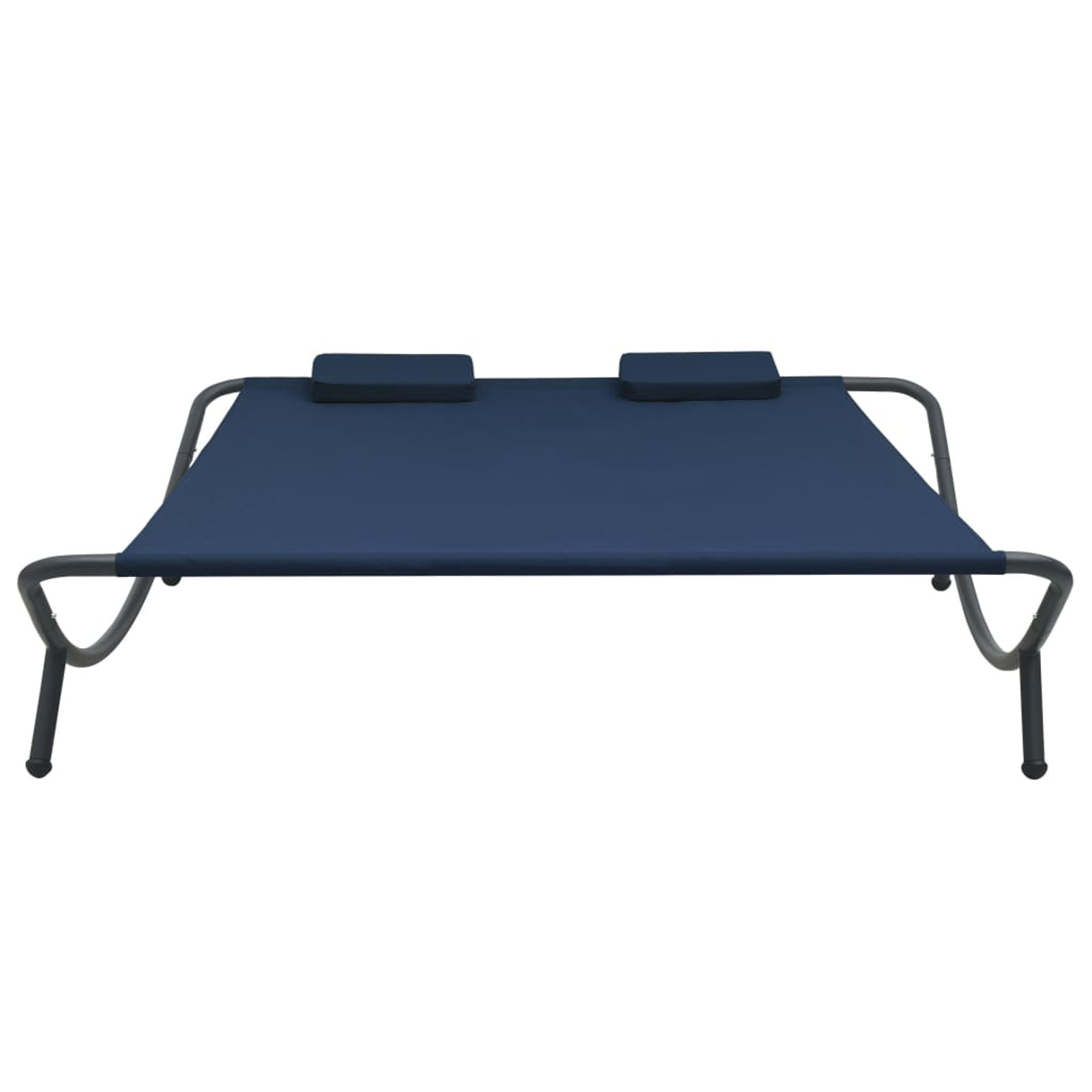 Anself Outdoor Lounge Bed with 2 Pillows Fabric Sunbed Steel Frame for Poolside, Patio, Balcony, Beach, Outdoor Furniture 78.7 x 68.1 x 17.7 Inches (L x W x H)