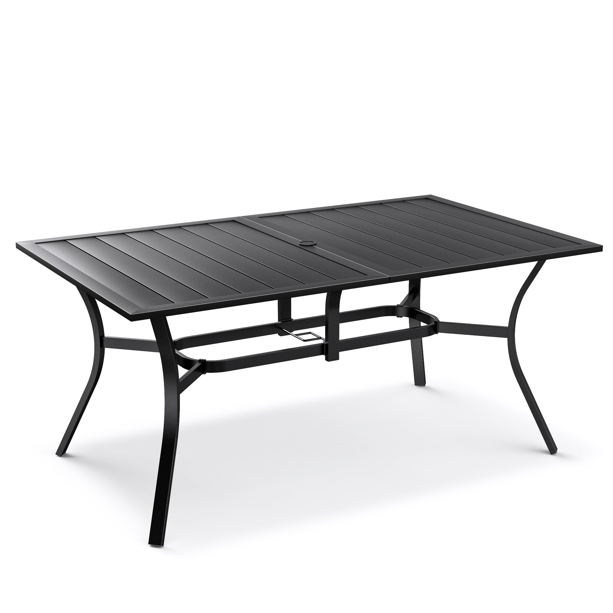BigRoof 63" x 38" Garden Patio Dining Table Metal Steel Rectangular Slat Outdoor/Indoor Bistro Cafe Furniture with Umbrella Hole,Black