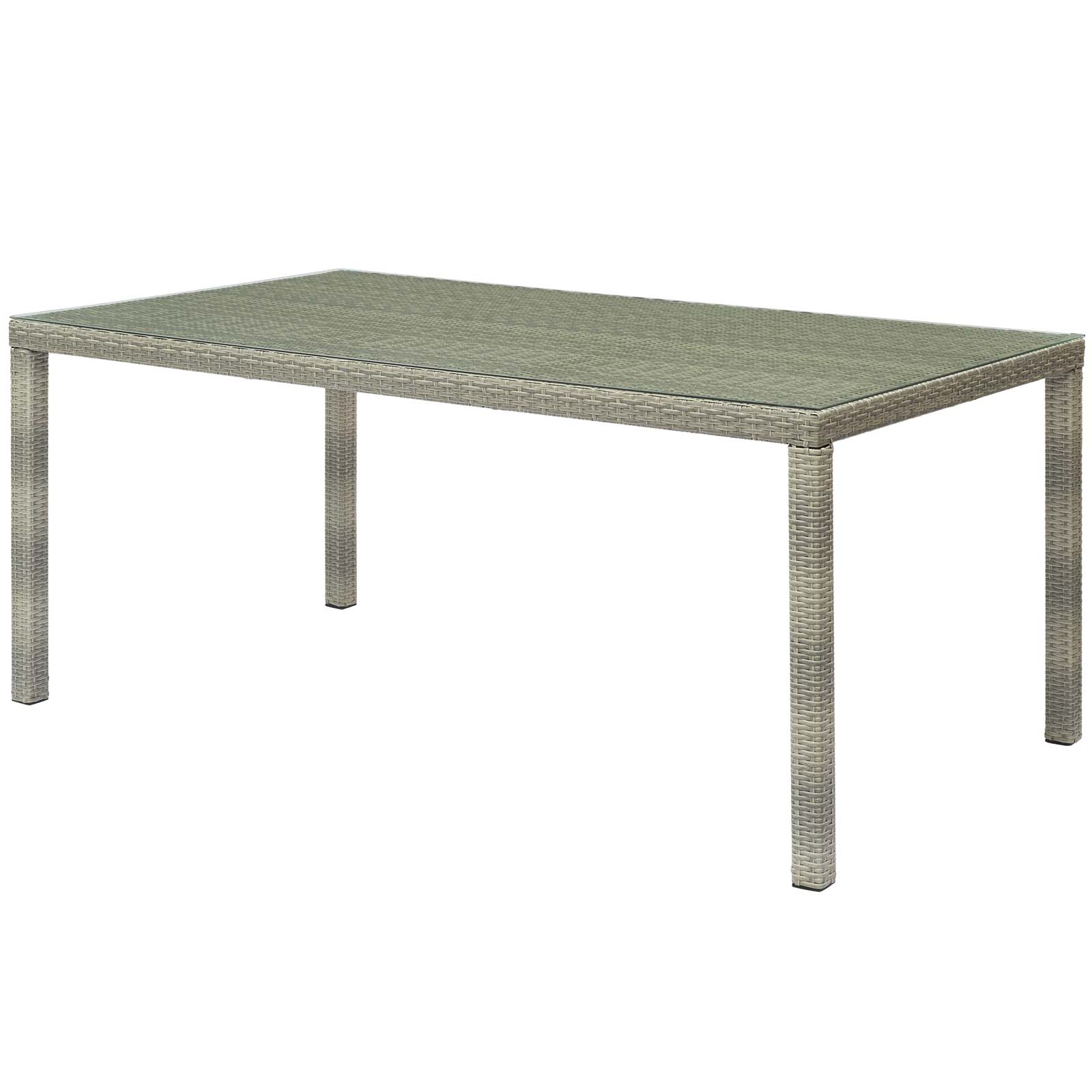 Modern Contemporary Urban Design Outdoor Patio Balcony Garden Furniture Lounge Dining Table, Rattan Wicker Glass, Light Grey Gray