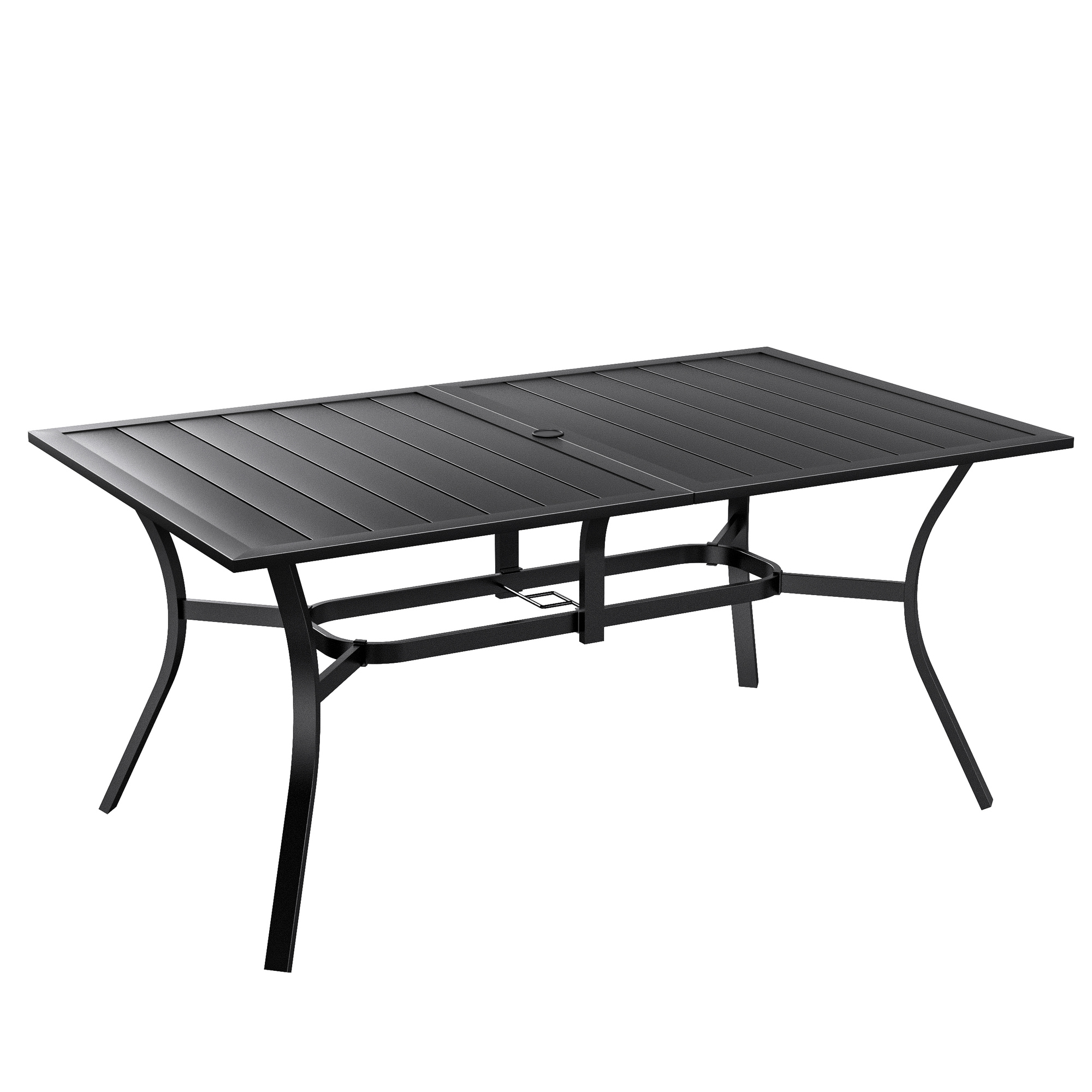Bigroof Large Rectangle Patio Dining Table 63" Metal Slat 6 Person Outdoor Furniture Garden Table