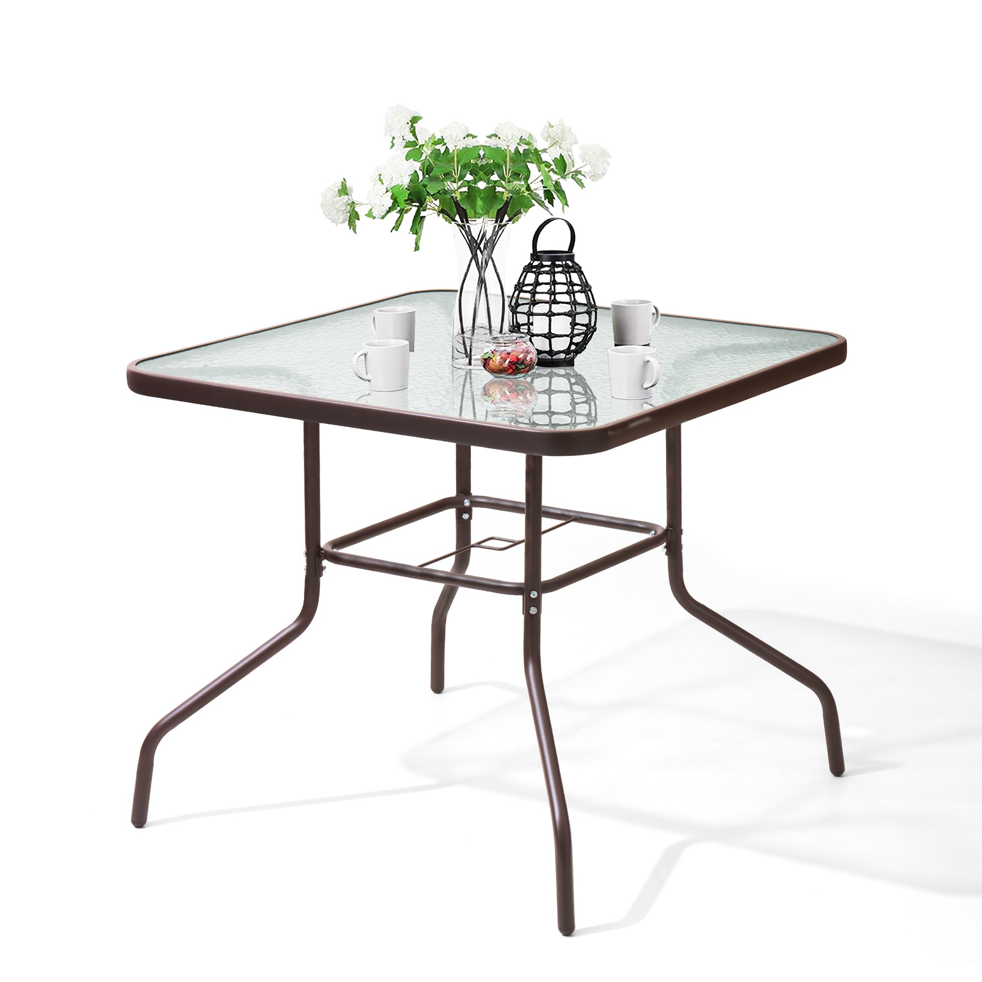 Pellebant Patio Dining Table Outdoor Square Table with Umbrella Hole for 4 Persons,Brown