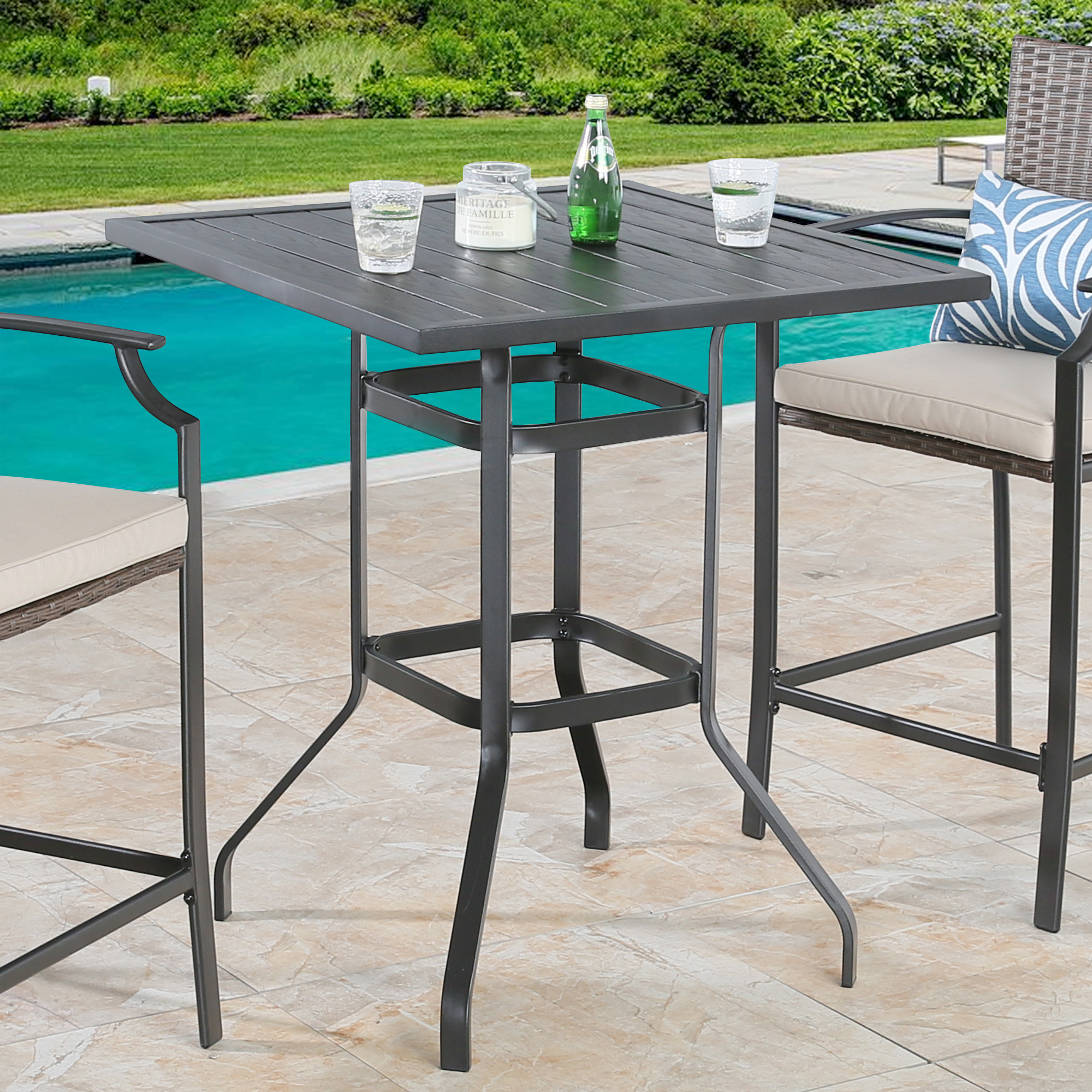 Ulax Furniture Patio Square Steel Bar Table Outdoor Counter Height Dining Table with Woodiness Grains Tabletop