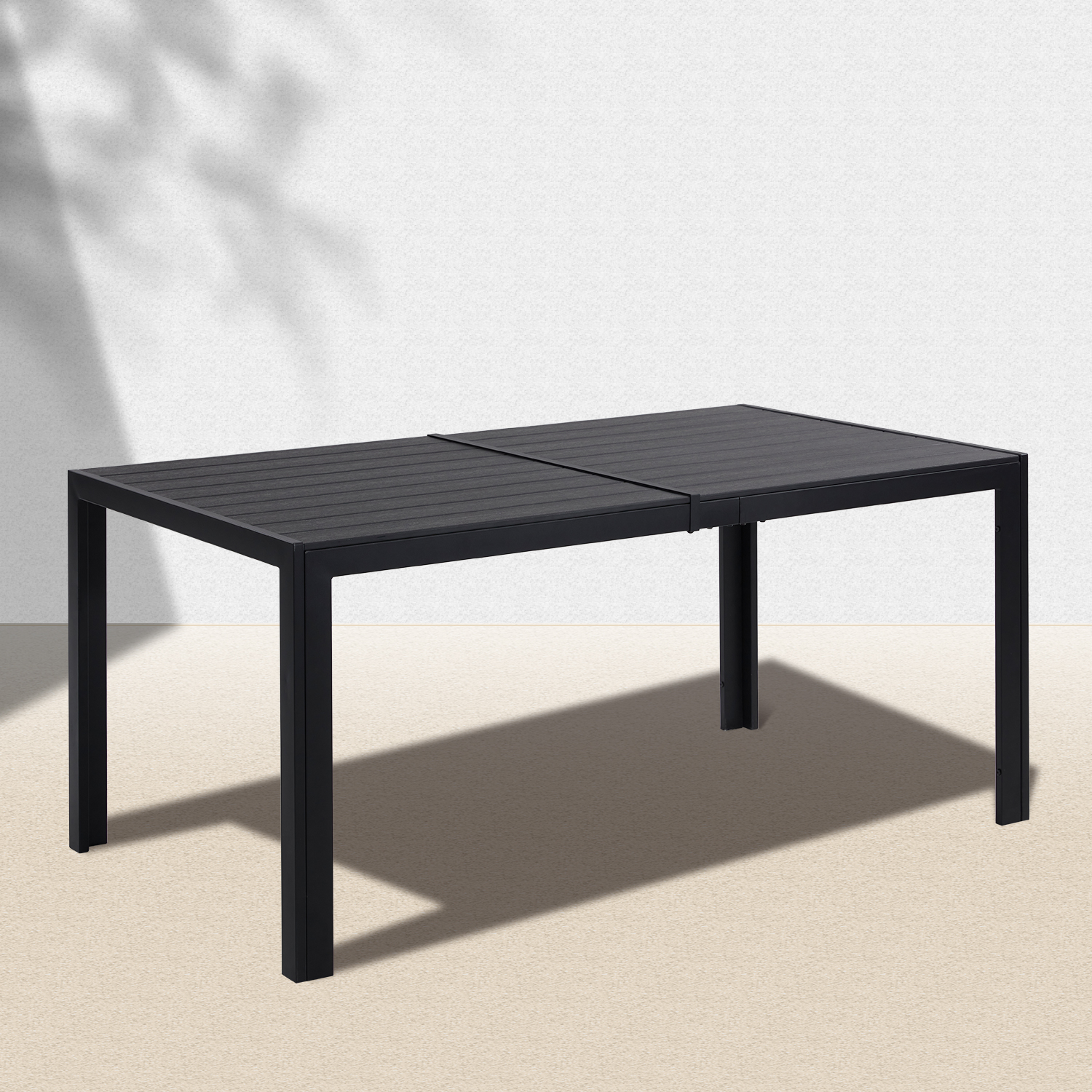VICLLAX Rectangle Outdoor Dining Table for 6, All Weather Metal Steel Slat Patio Table with Wood-Like Table top,Black