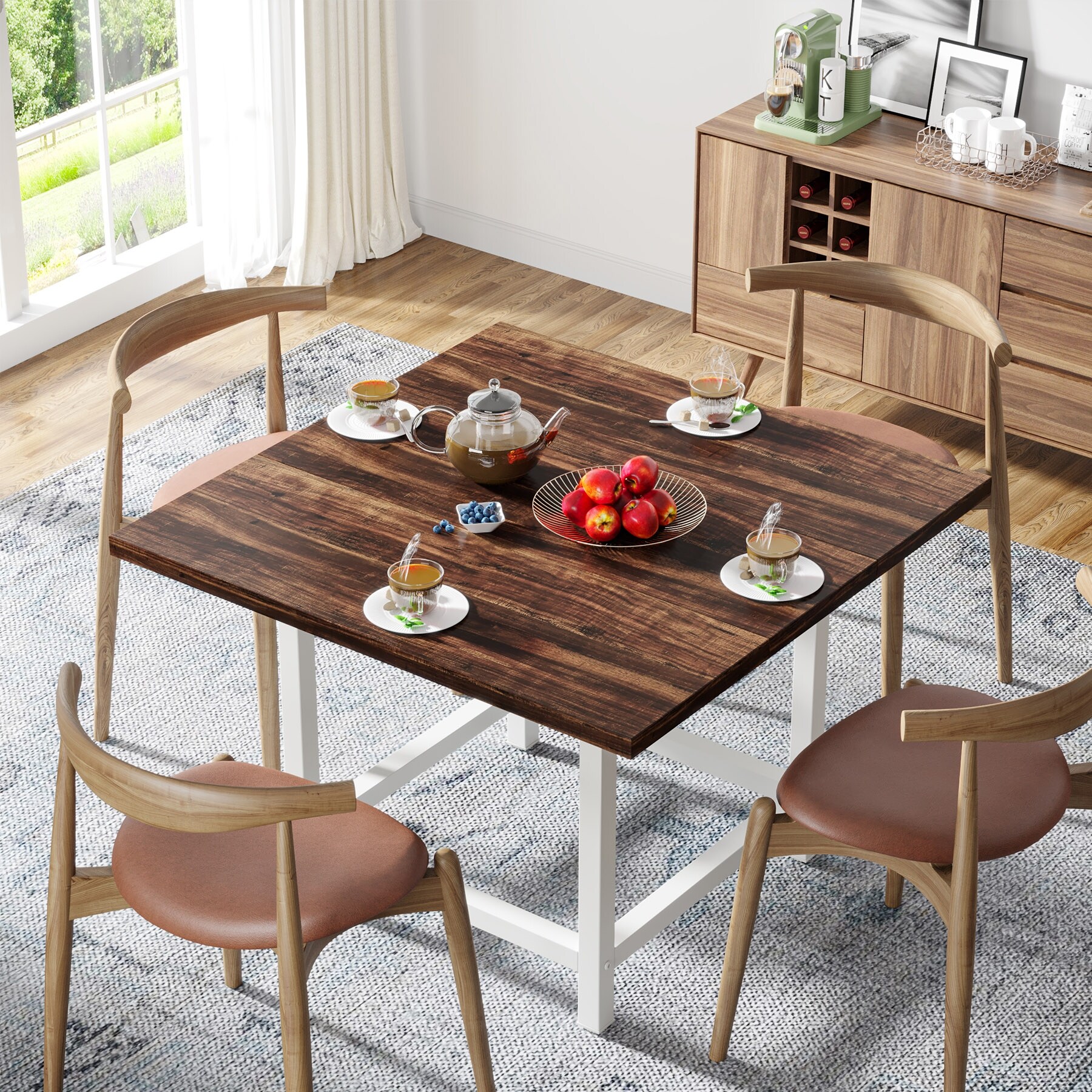 Farmhouse Square Dinning Table for 4, Rustic 39"x 39"x29 Wooden Kitchen Table,Dinner Table Patio Table for Backyard, RUSTIC&WHITE