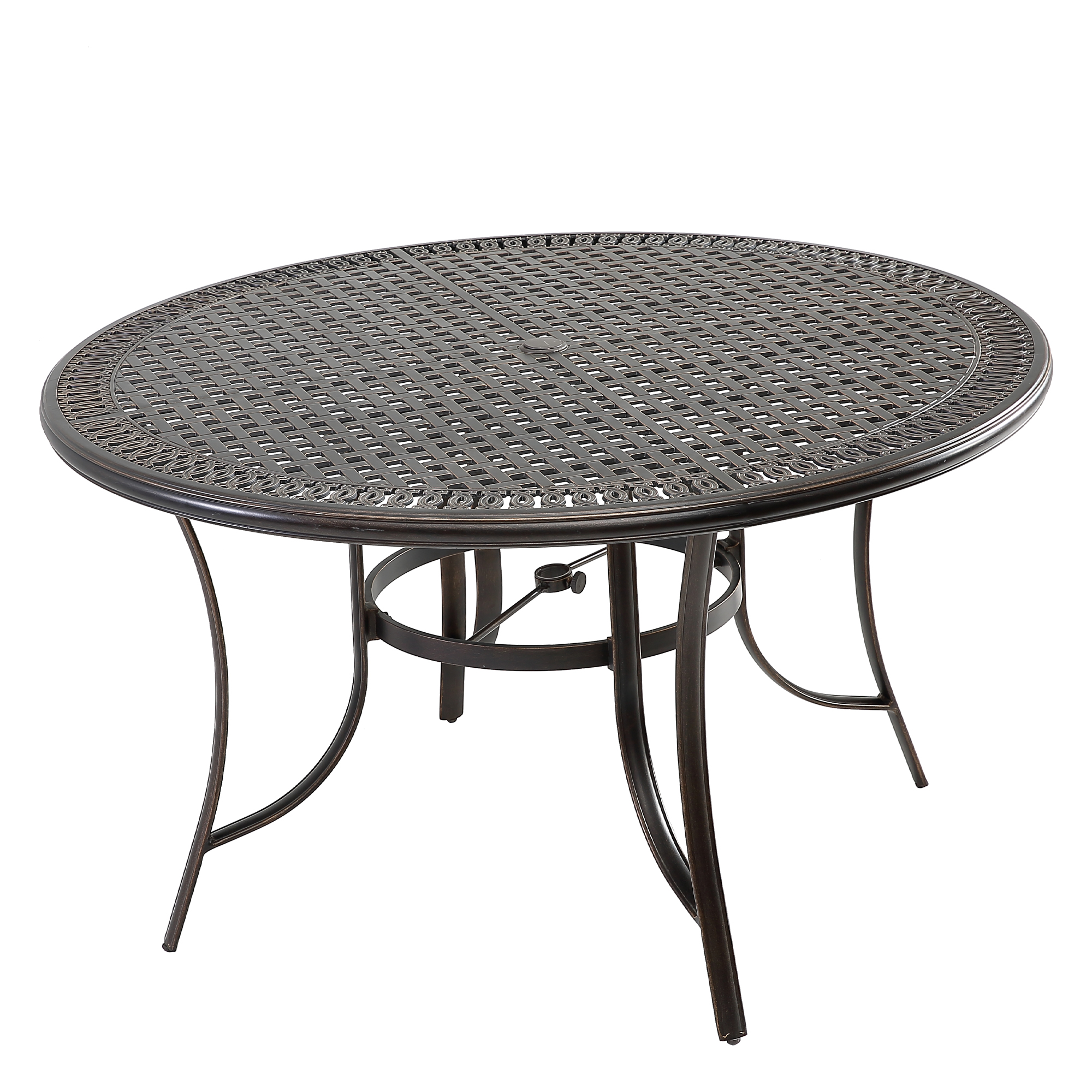 Mondawe 34" Height Outdoor Round Cast Wrought Iron Patio Metal Dining Table with Umbrella Hole, for Lawn Balcony