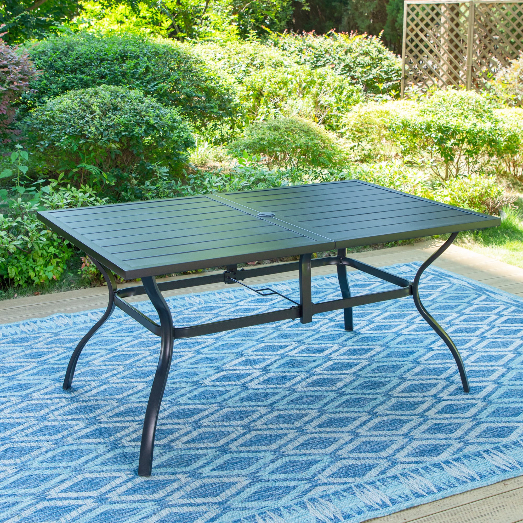 Summit Living 60"x 38"Outdoor Patio Rectangle Metal Dining Table with 1.9" Umbrella Hole for 6-Person, Black