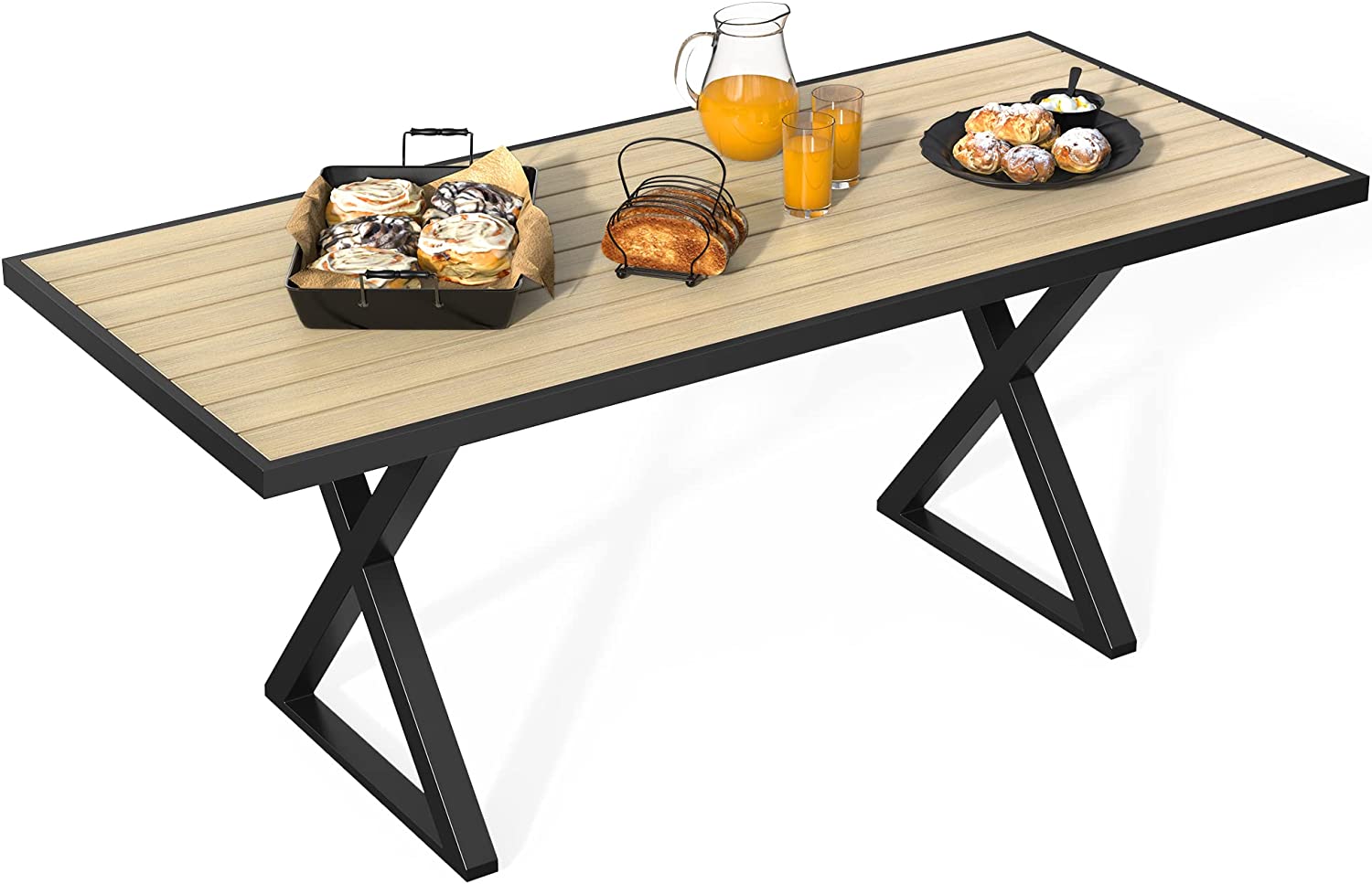 DWVO 70in Outdoor Rectangular Dining Table, Patio Table with Umbrella Hole - Black & Nature Wood