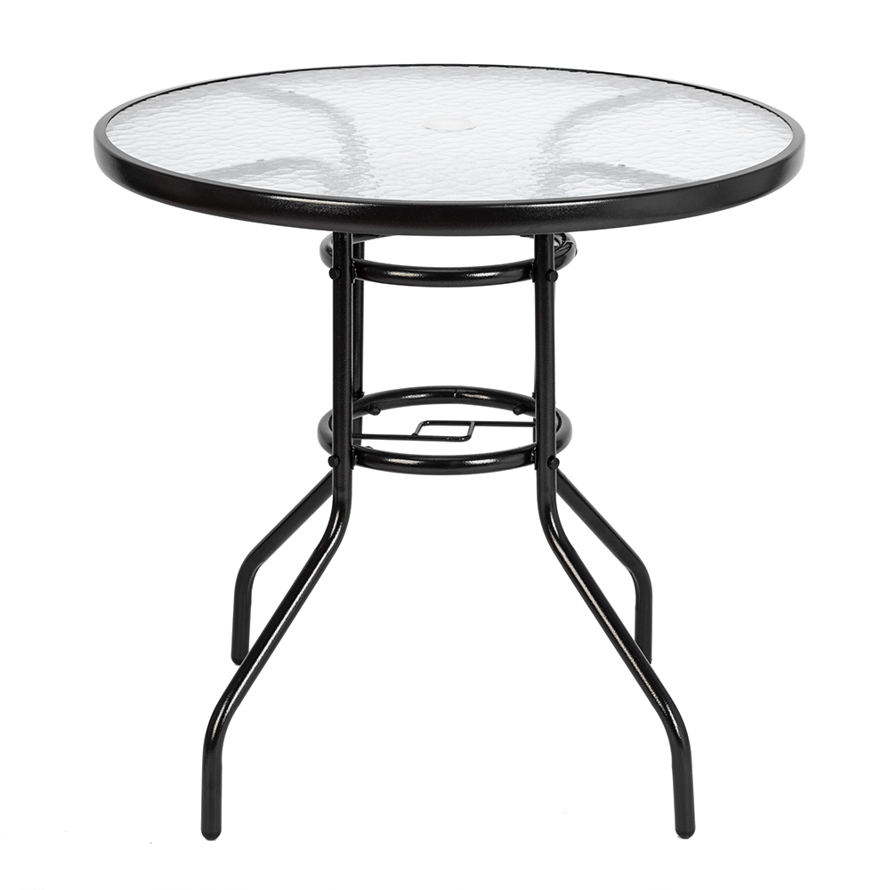 Patio Table with 1.8" Umbrella Hole, Round Steel Frame outdoor Dining Table, Outside Bar for Patio Porch Garden, 31.5" Tempered Glass Table Top Small Outdoor Table, JA2113