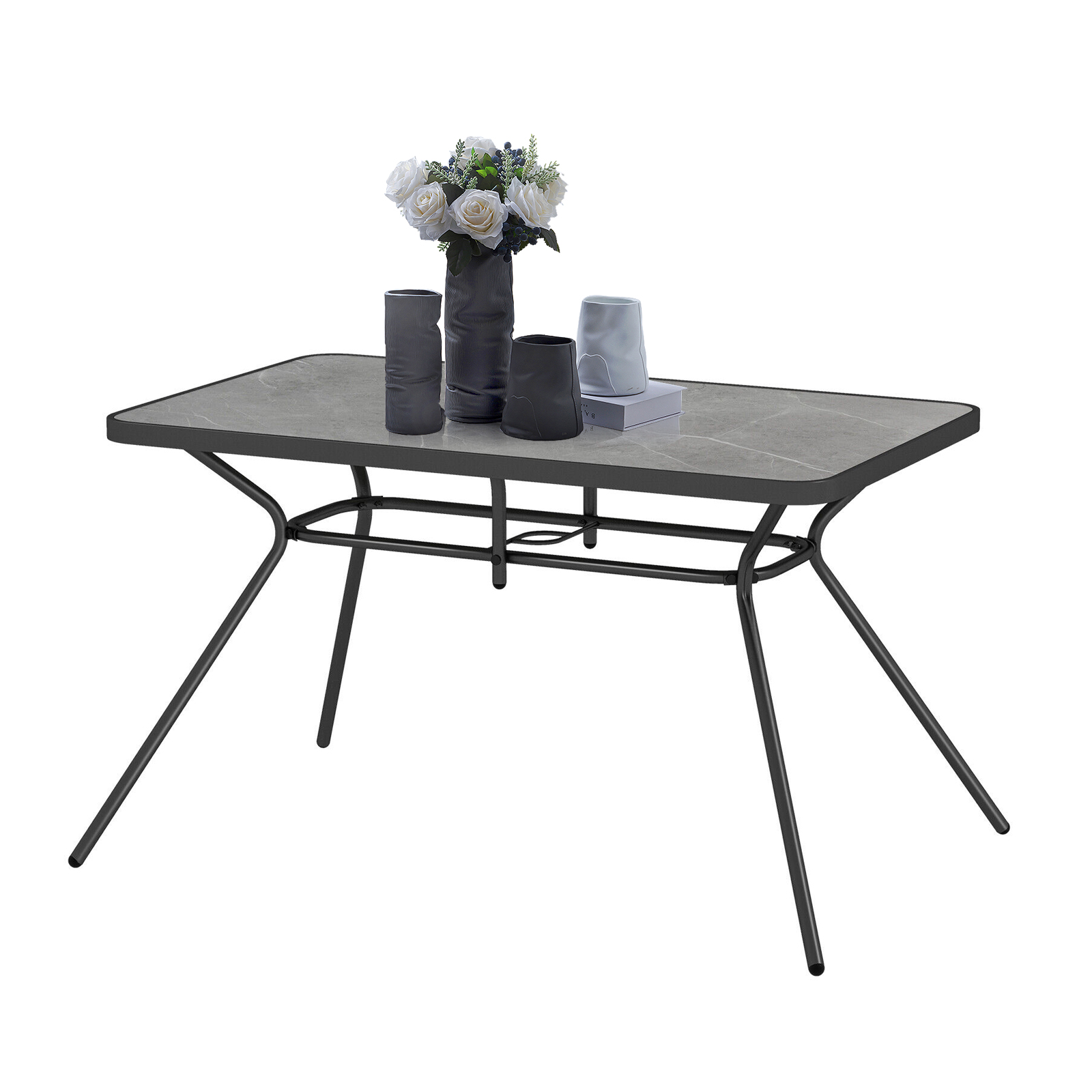 Vicamelia Patio Rectangle Dining Table 49" x 29.5", Patio Metal Steel Slat Table with Umbrella Hole for Poolside, Lawn Garden, Black