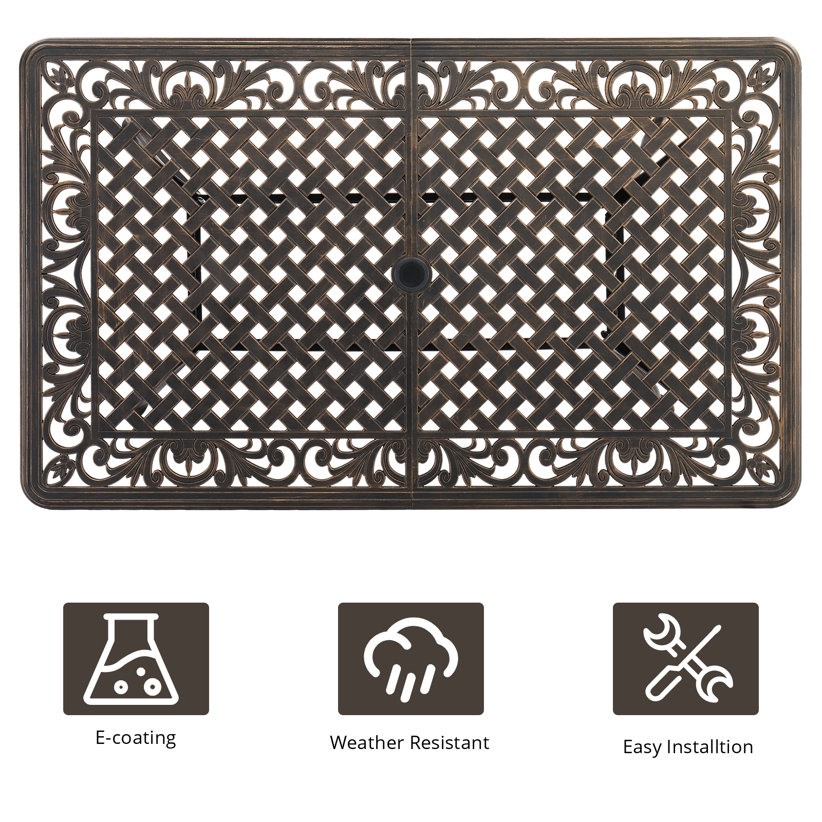 OverPatio Patio Dining Table, Cast Aluminum Outdoor Rectangular Table, 59 in Oversized Picnic Table