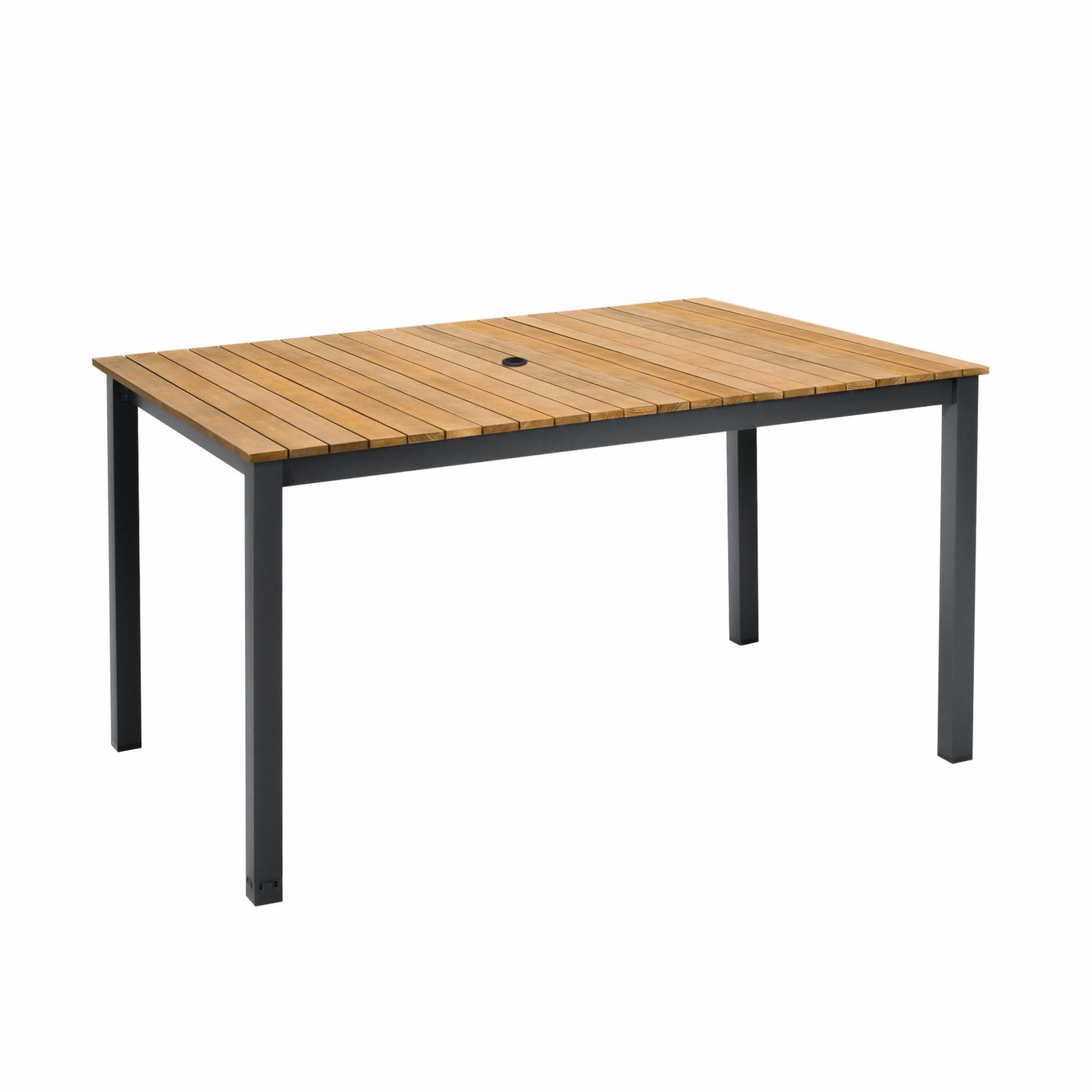 Costway Patio Rectangle Acacia Wood Dining Table Spacious Slatted Top Up to 6 Outdoor