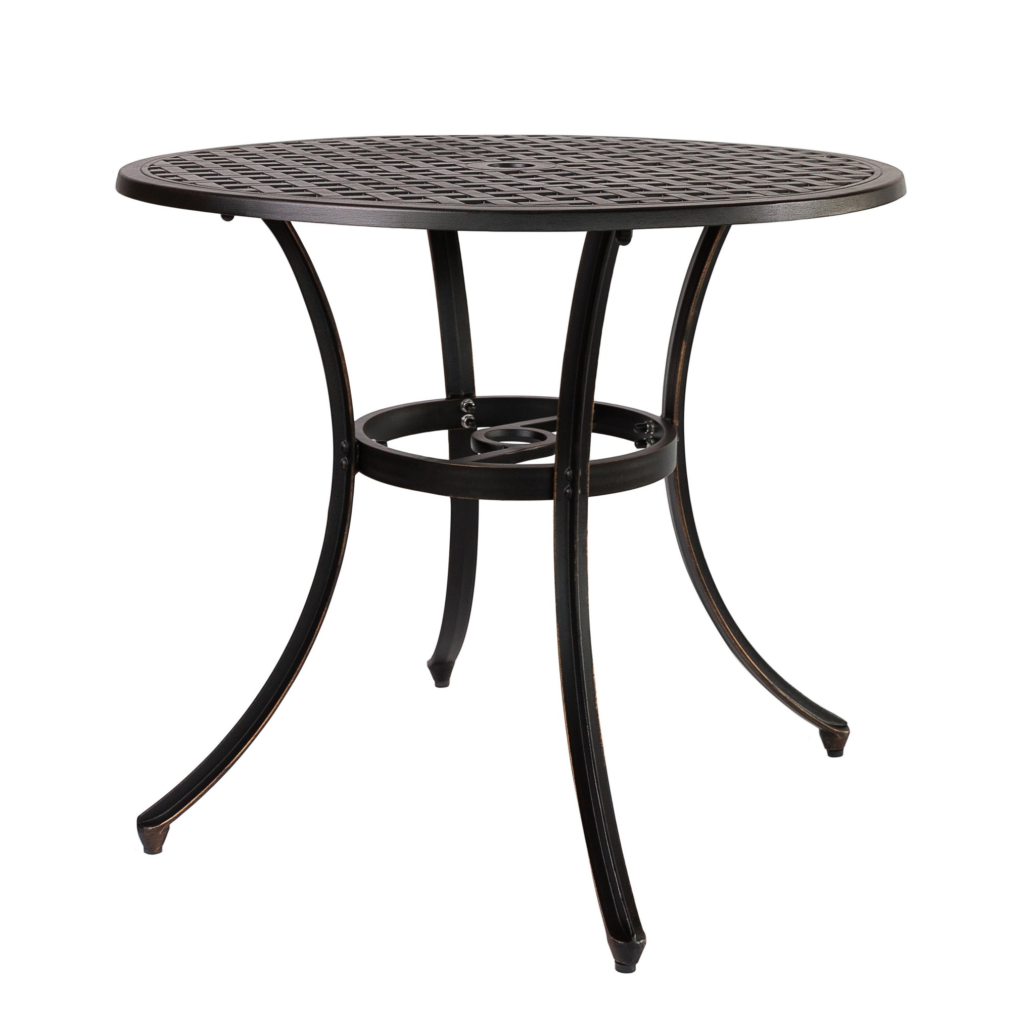 Kinger Home Outdoor Dining Table, 34 Inch Large Round Metal Patio Table with Umbrella Hole, Cast Aluminum Patio Dining Furniture, Drop Leaf Weatherproof and Windproof Patio Furniture - Antique Bronze