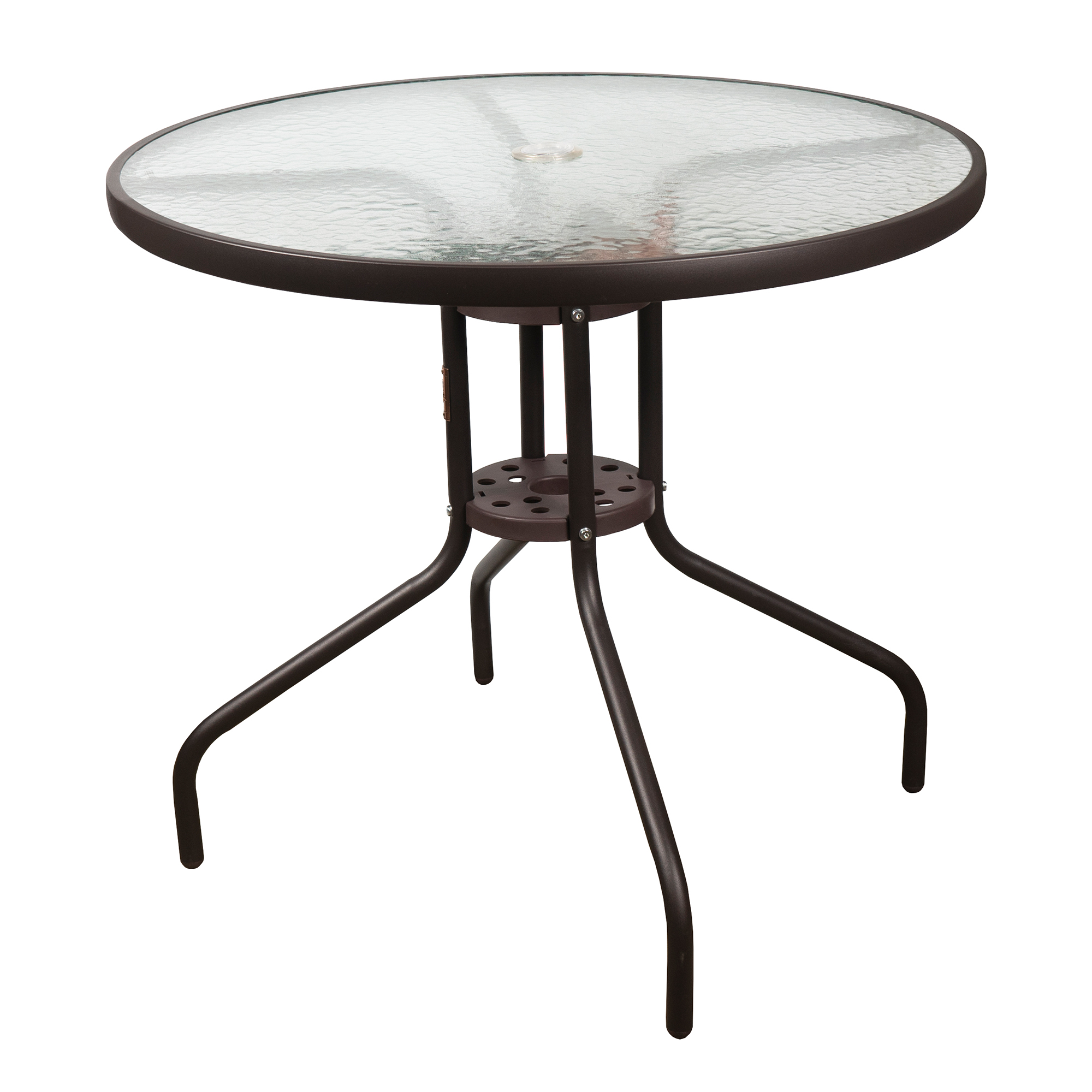 Garden Elements Outdoor Wave Glass Patio Dining Furniture Round Steel Table, Brown, 31.5"