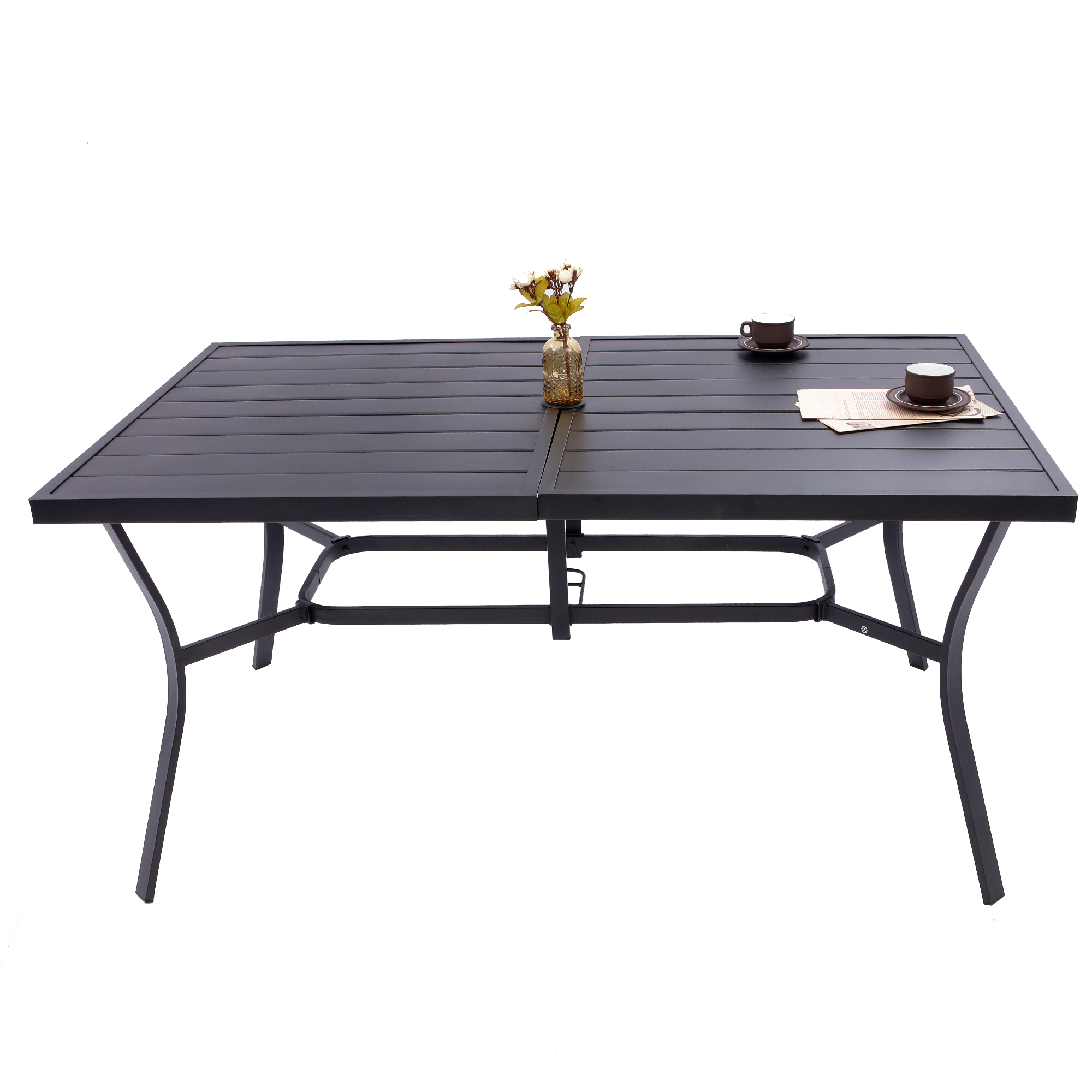 Outdoor Rectangle Dining Table with Umbrella Hole, Patio Metal Table 60" X 38"