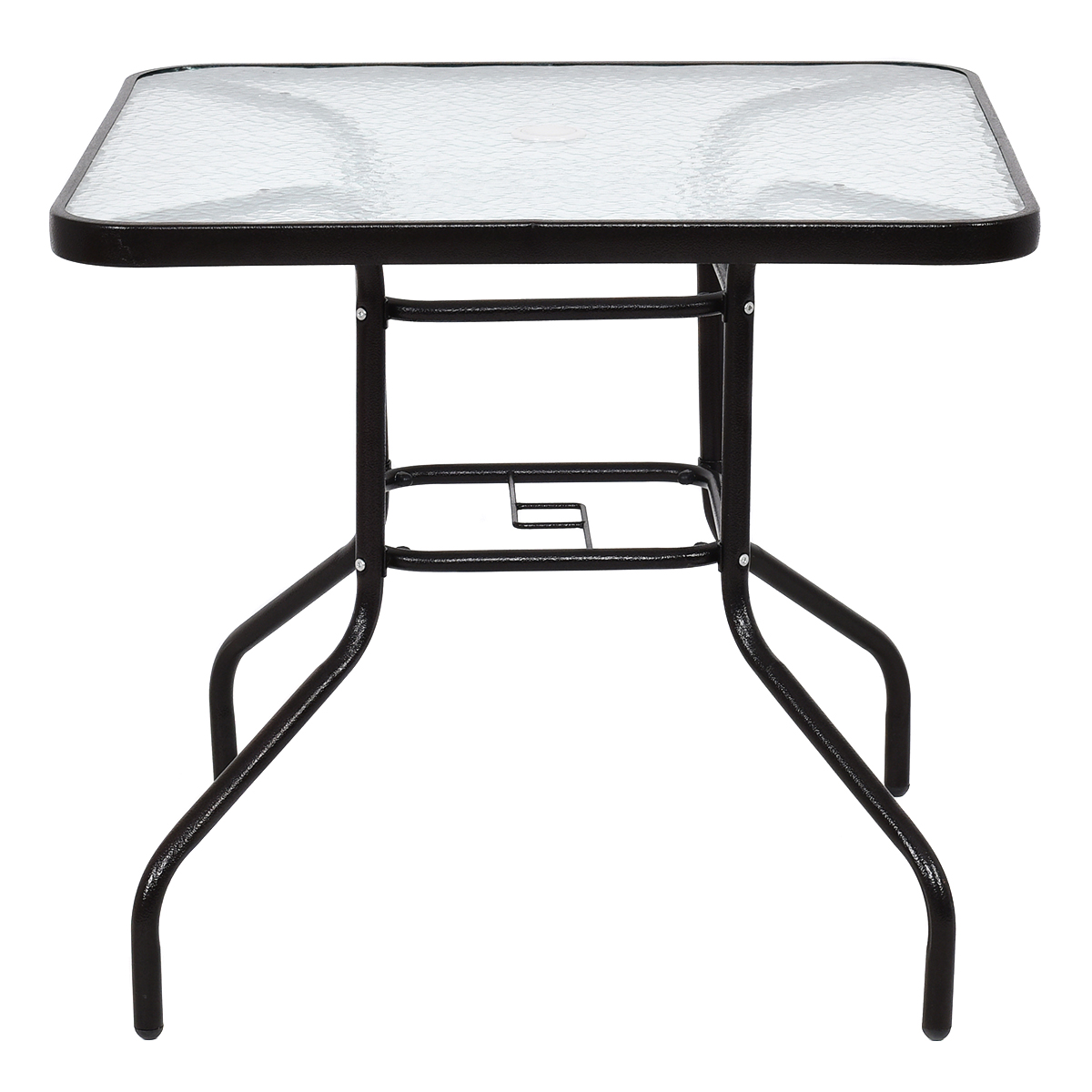 Topbuy 32" Patio Square Table Steel Frame Dining Table Patio Furniture Glass Top