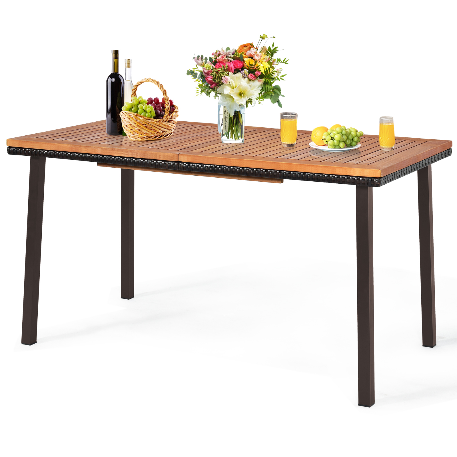Patiojoy Acacia Table Dining Table w/ 2" of Hole Slatted Wood Surface for Indoors & Outdoors