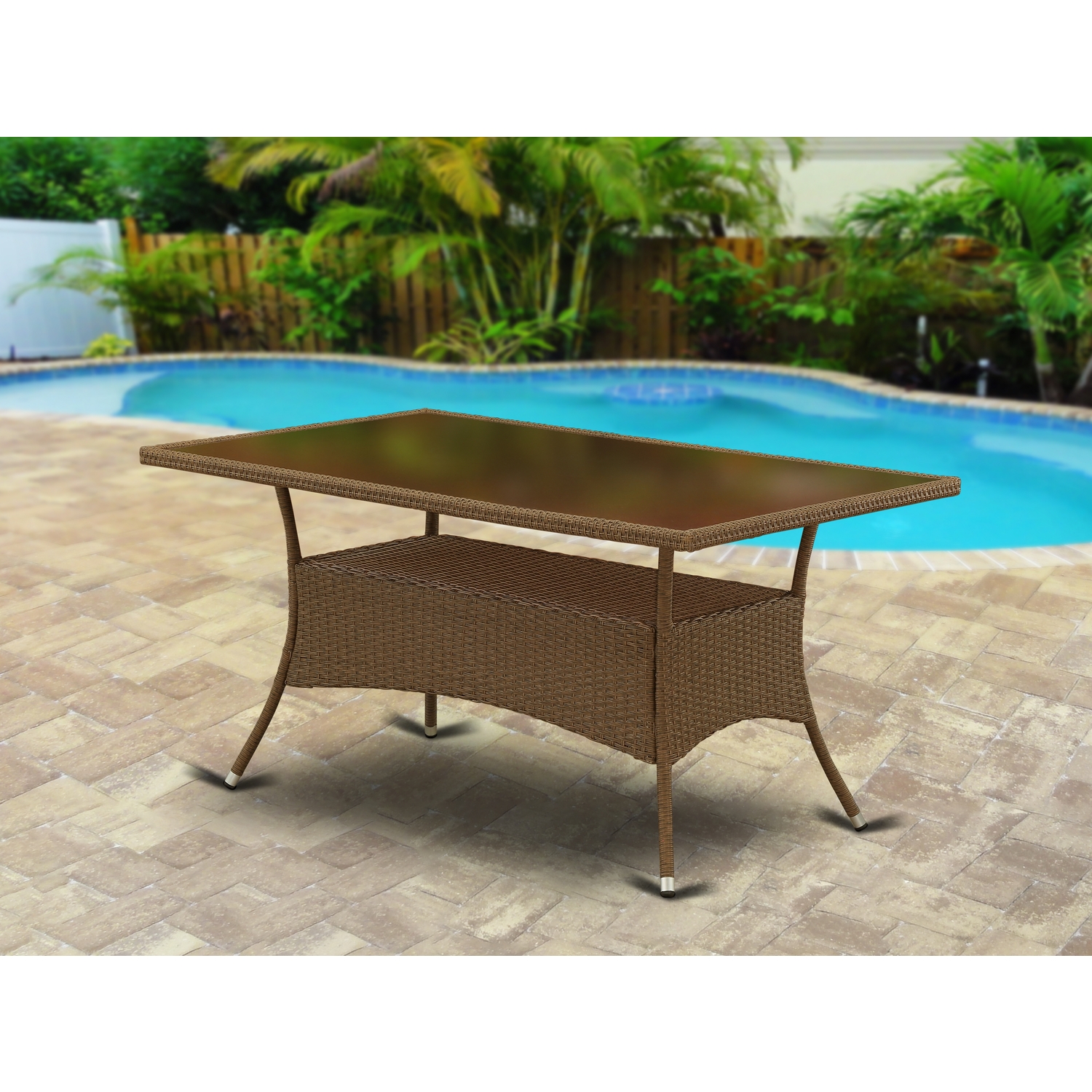 East West Furniture Oslo Metal and PE Wicker Patio Dining Table in Brown