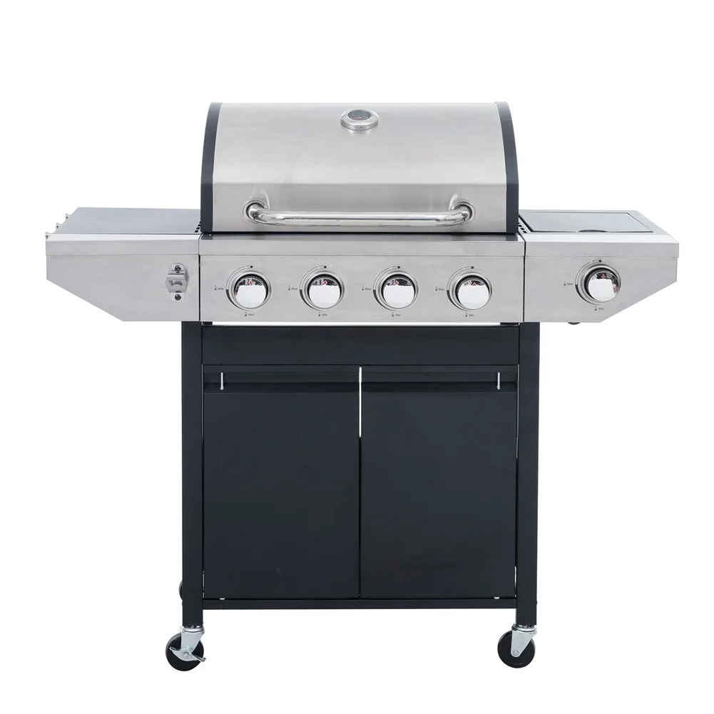 Propane Gas BBQ Grill, 42,000 BTU Output Stainless Steel BBQ Grill with Side Burner, 4-Burners Gas BBQ Grill, for Outdoor Cooking Kitchen Patio Backyard Barbecue