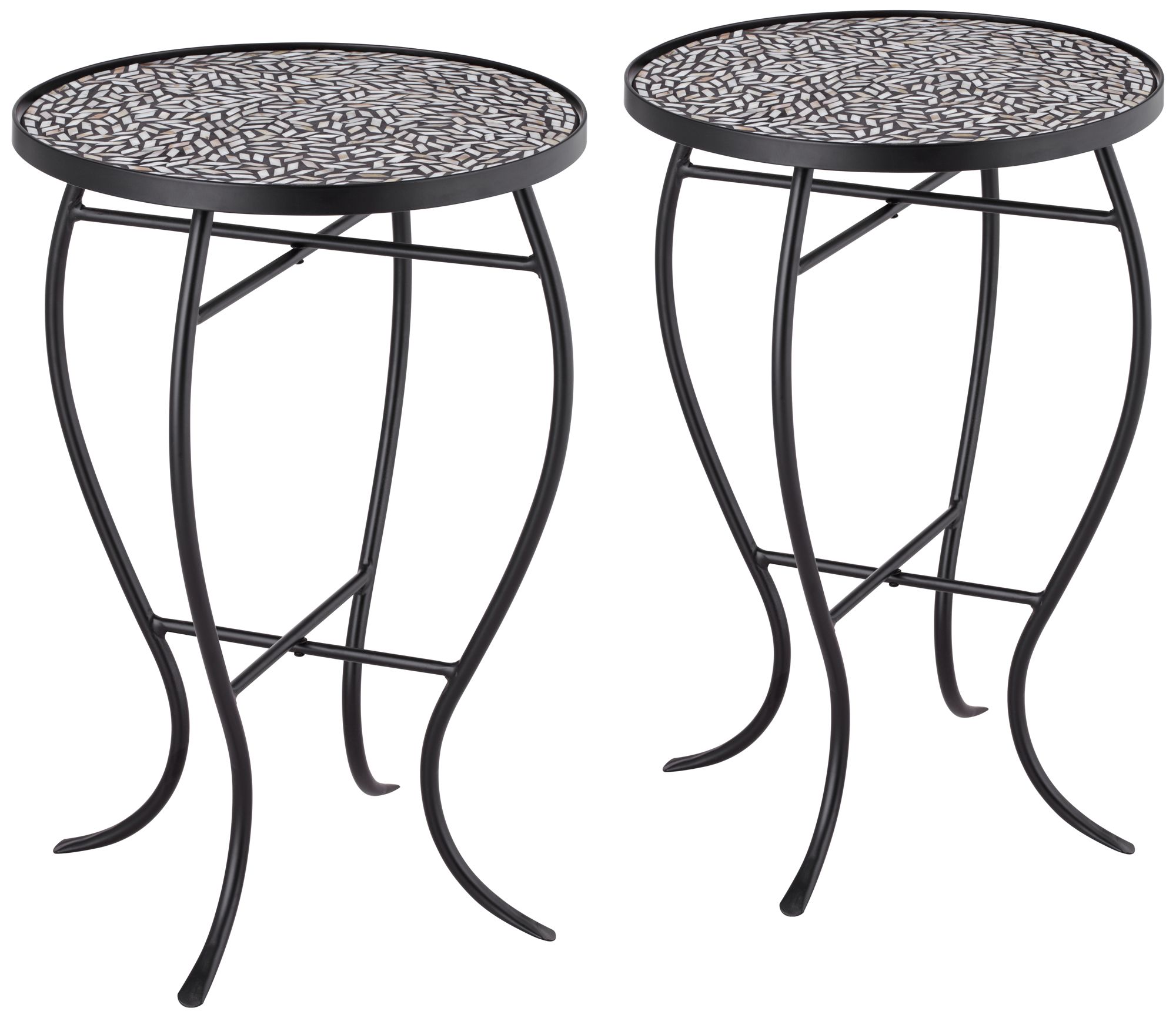 Teal Island Designs Modern Black Round Outdoor Accent Side Tables 14" Wide Set of 2 Free-Form Mosaic Tabletop Front Porch Patio Home House
