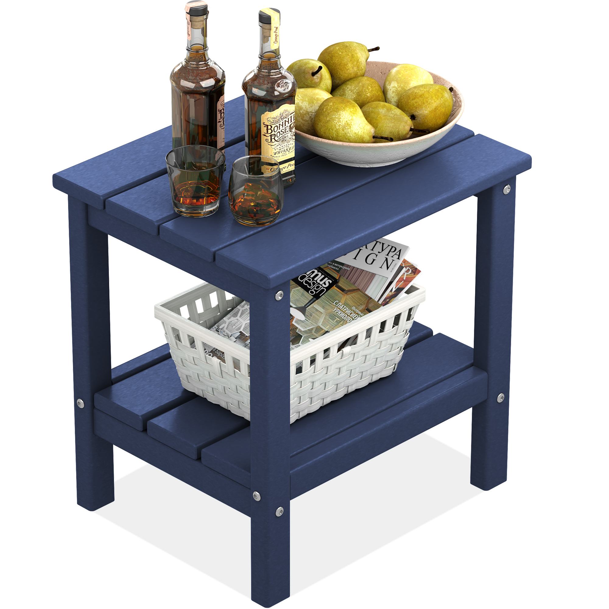 JEAREY 2-Tier Adirondack Side Table, 18.1" Plastic Outdoor End Tables for Patio Outside, Navy